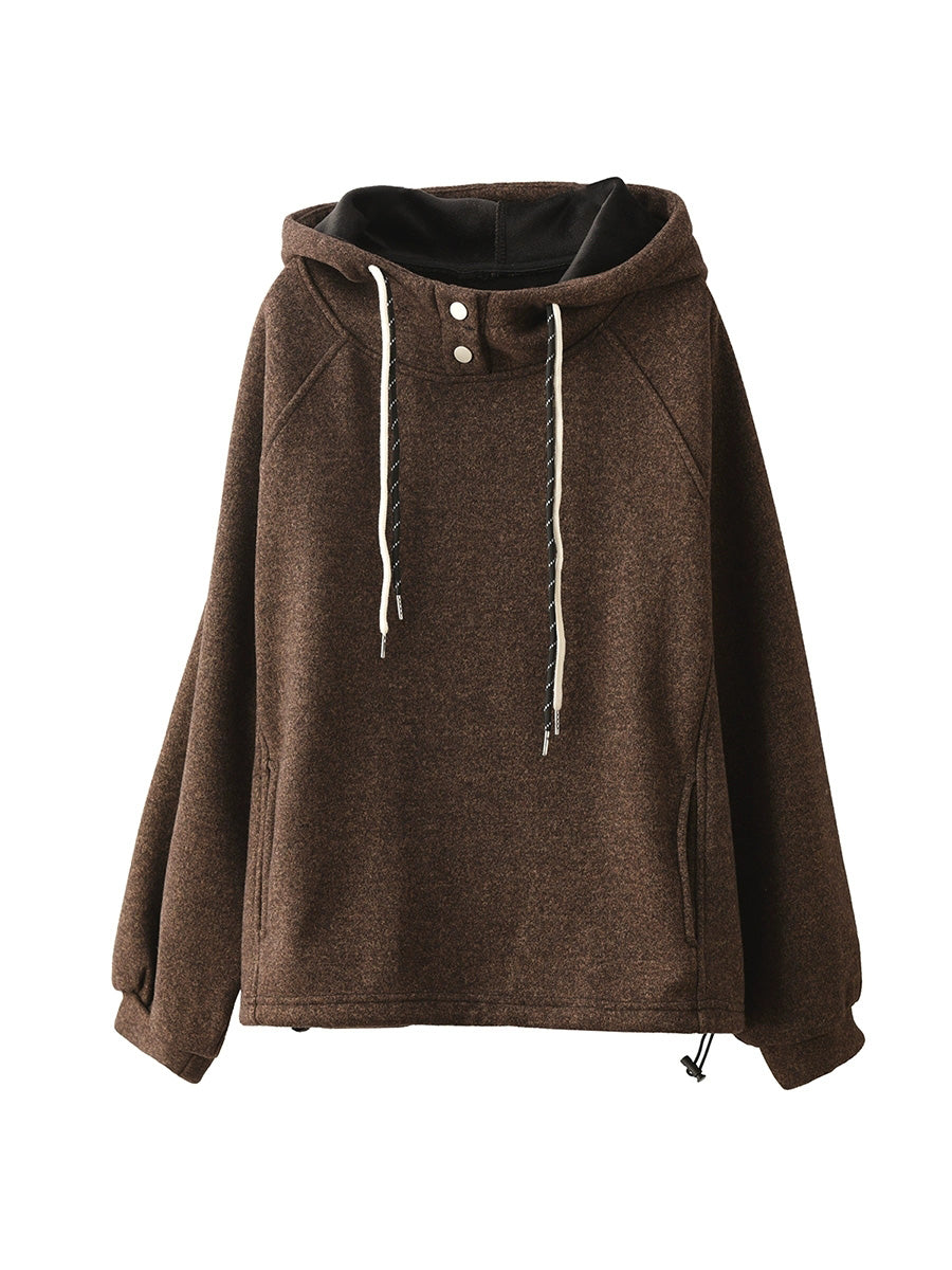 Stay warm and comfortable through cooler months with this versatile hooded blouse. Featuring a classic solid color design and cozy fleece lining, it delivers practical warmth without compromising style. The raglan sleeves provide an easy, relaxed fit perfect for layering or wearing solo, while the full-length coverage keeps you protected from the elements. An ideal transitional piece for autumn and winter wardrobes that balances casual elegance with functional comfort.