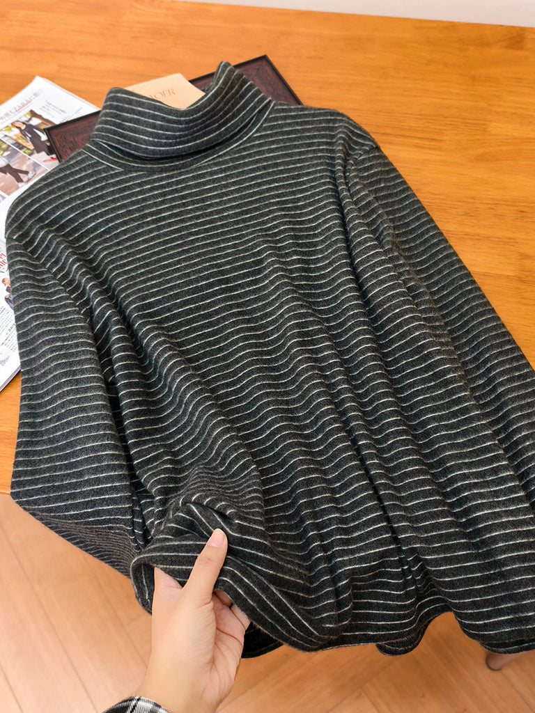 Women Vintage Autumn Stripe Turtleneck Blouse