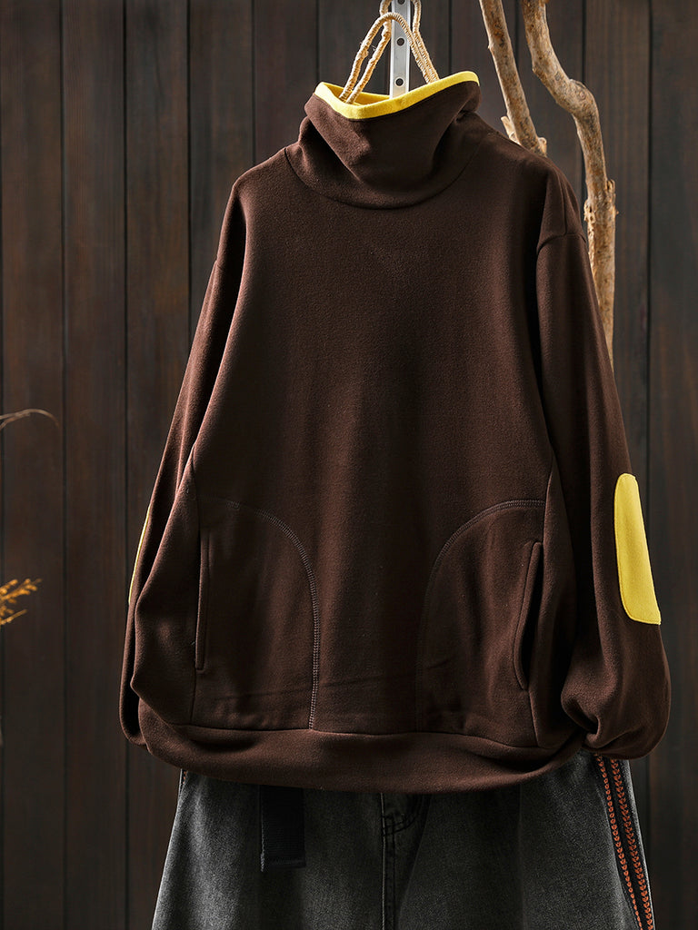 Women Winter Casual Colorblock Fleece Turtleneck Blouse