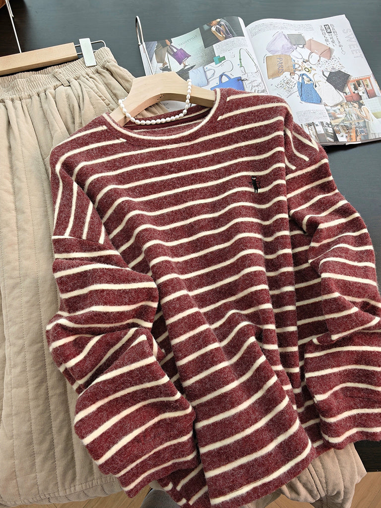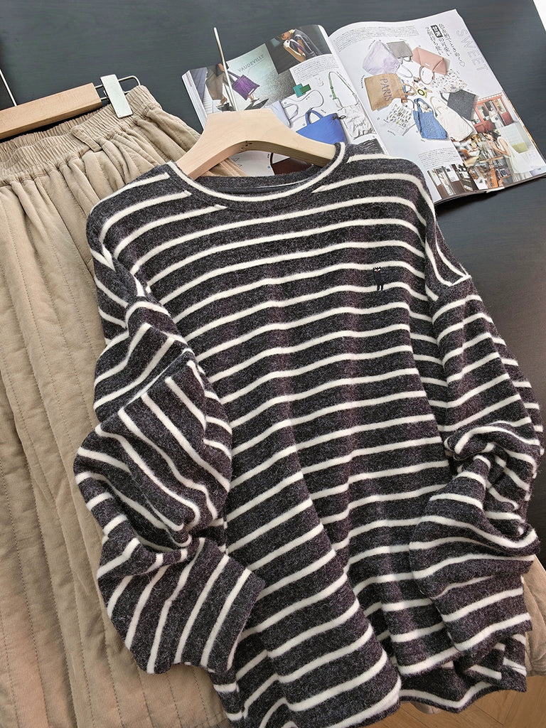Women Winter Vintage Stripe Half-Turtleneck Blouse
