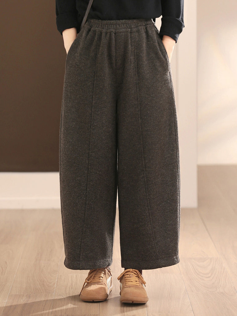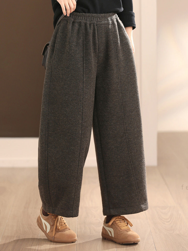 Women Winter Casual Ramie Fleece-lined Straight Pants