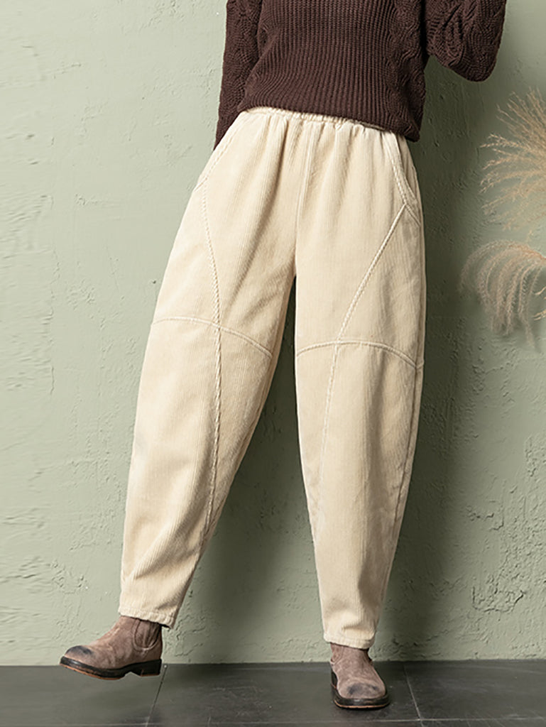 Plus Size Women Vintage Croduroy Plush Warm Harem Pants