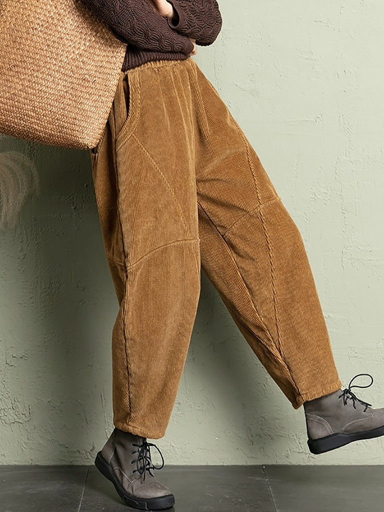 Plus Size Women Vintage Corduroy Pure Color Loose Harem Pants