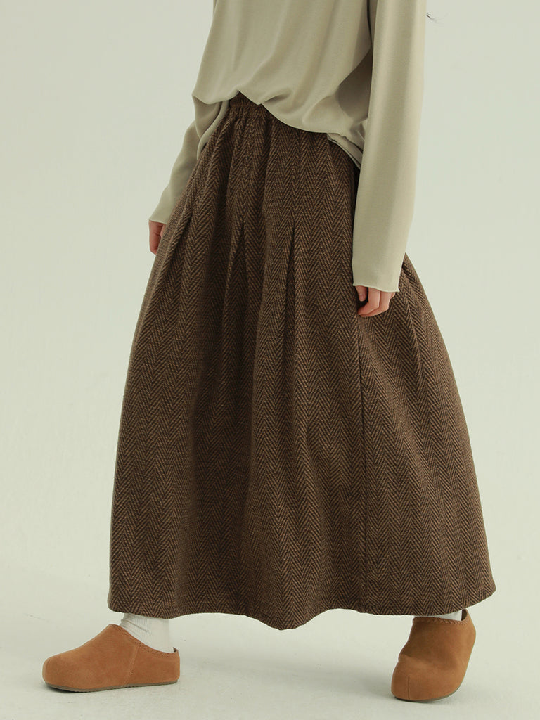 Women Retro Spliced Ramie Fleece-lined Skirt