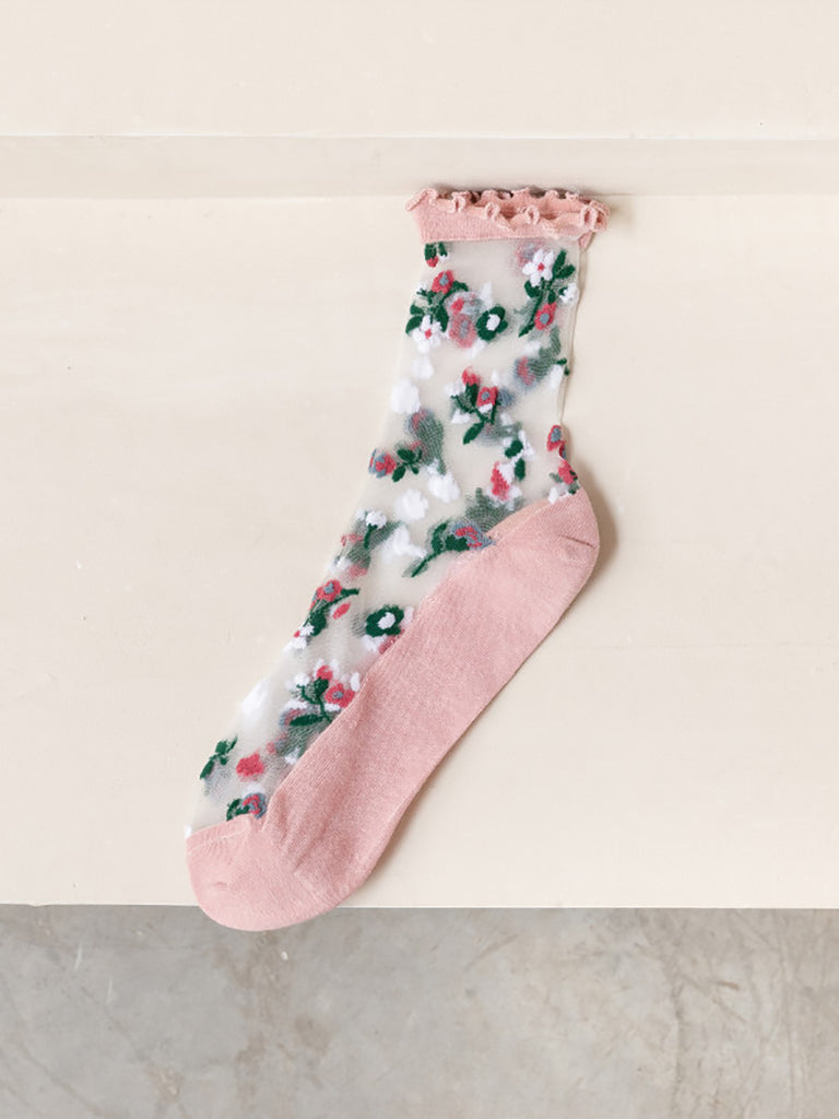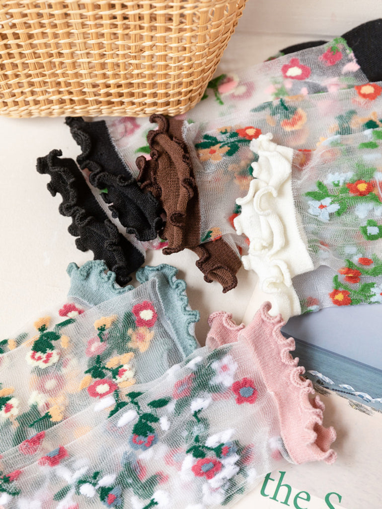5 Pairs Women Summer Floral Lace Spliced Socks