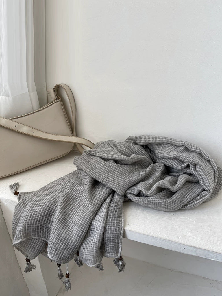 Artsy Plaid Cotton Tassel Shawl Scarf