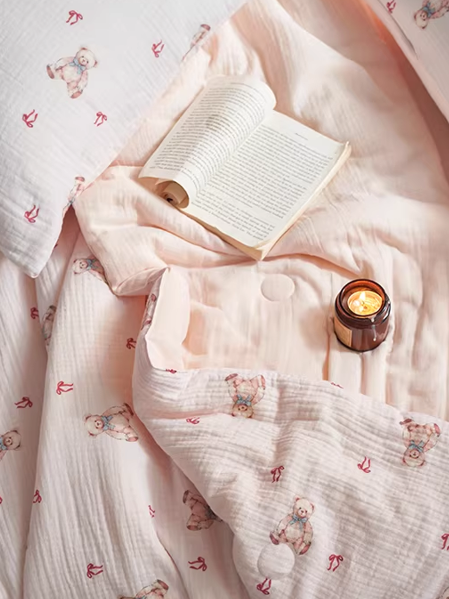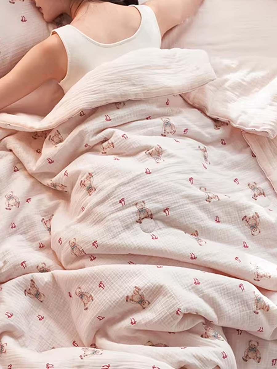 Pink Bear Retro Misty Gauze Summer Quilt