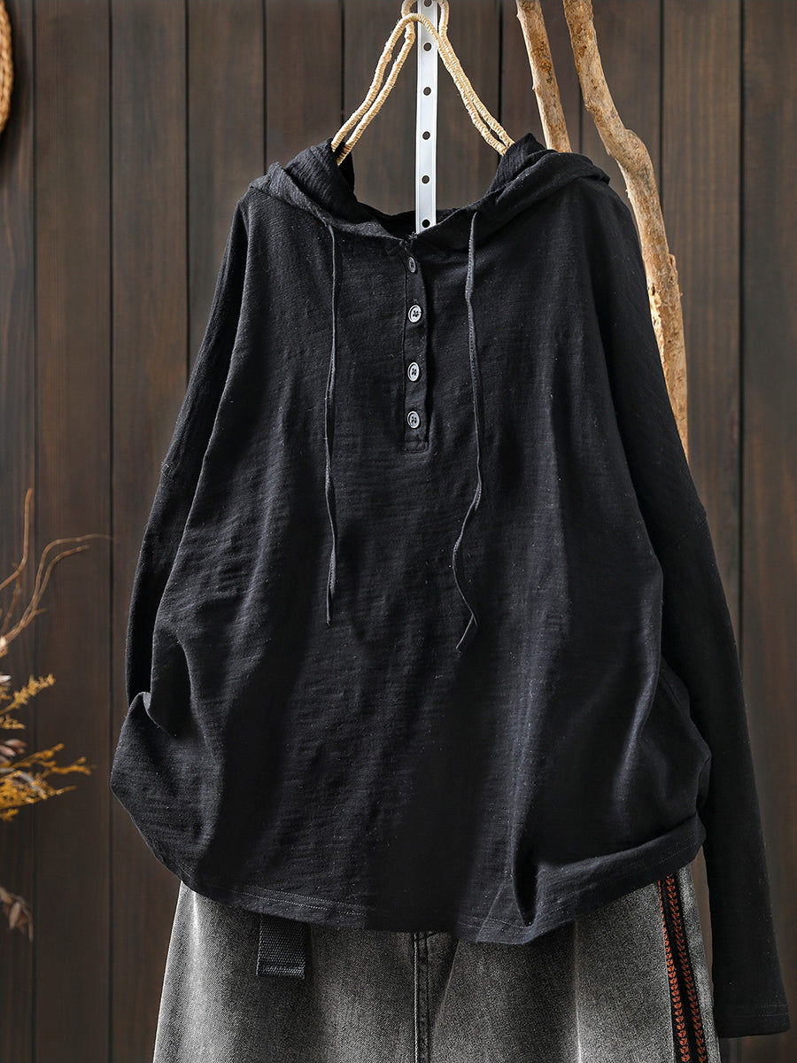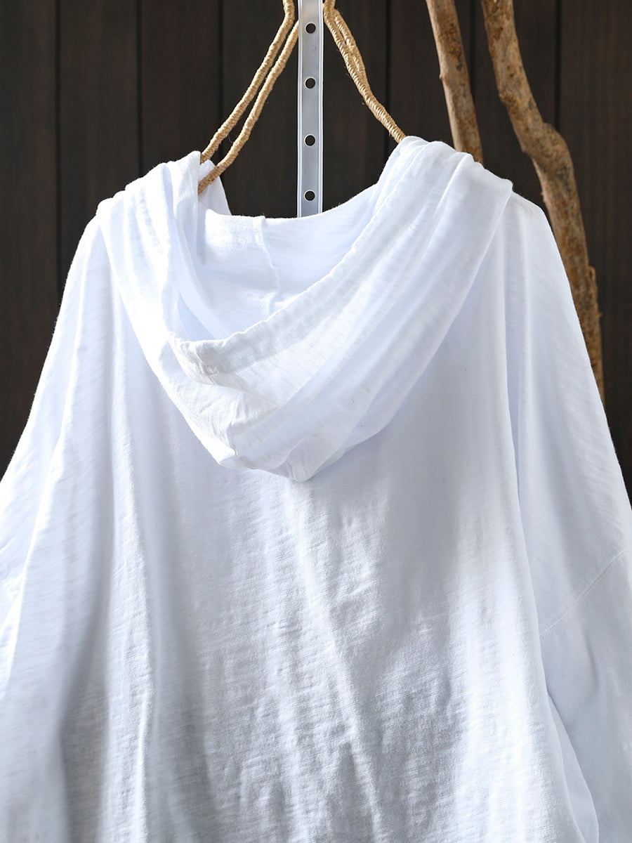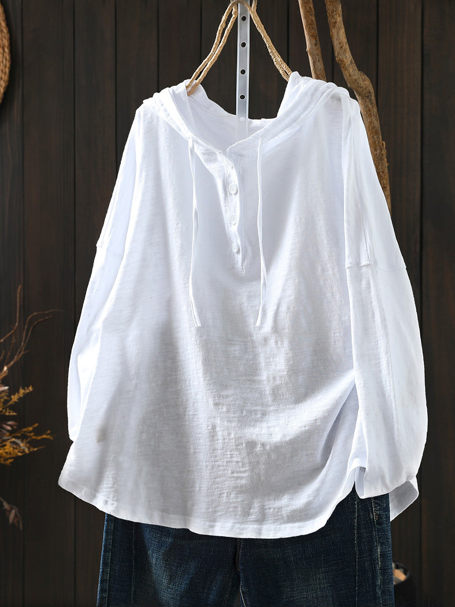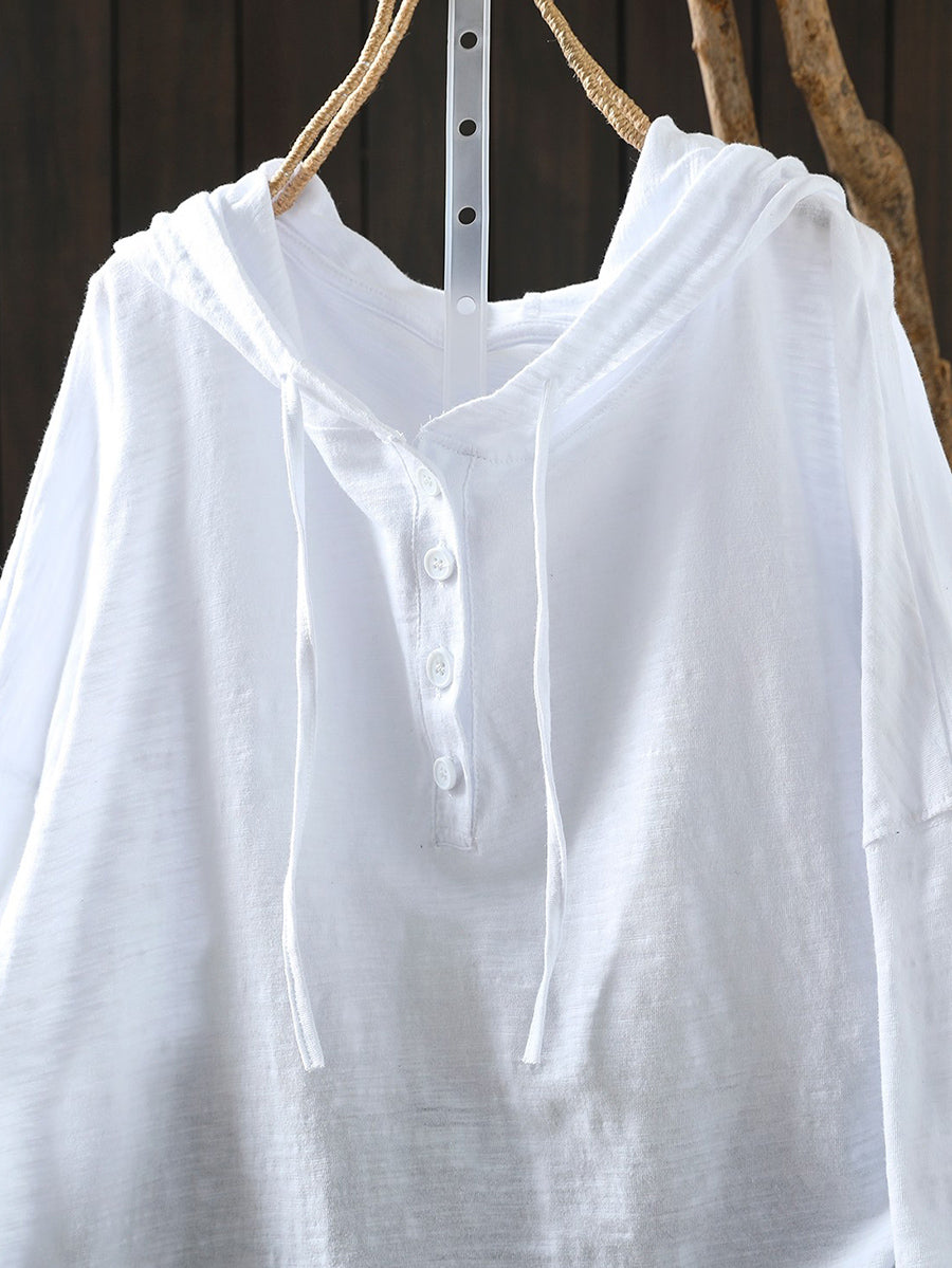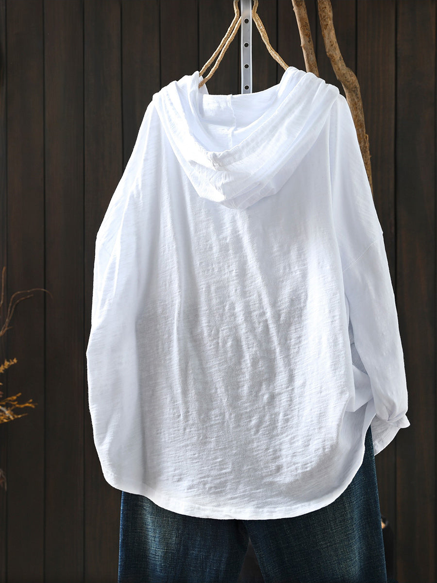 Women Casual Spring Pure Color 100%Cotton Hoodie