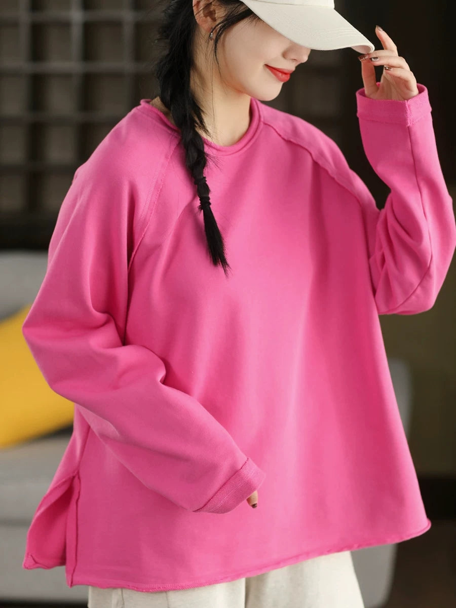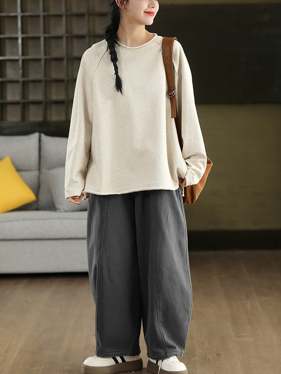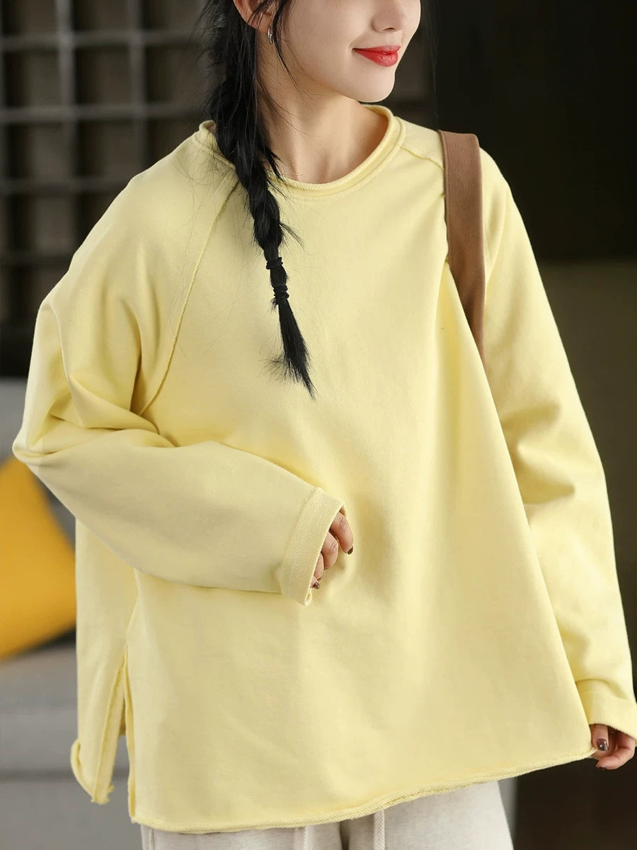 Women Casual Spring Pure Color 100%Cotton O-Neck Blouse