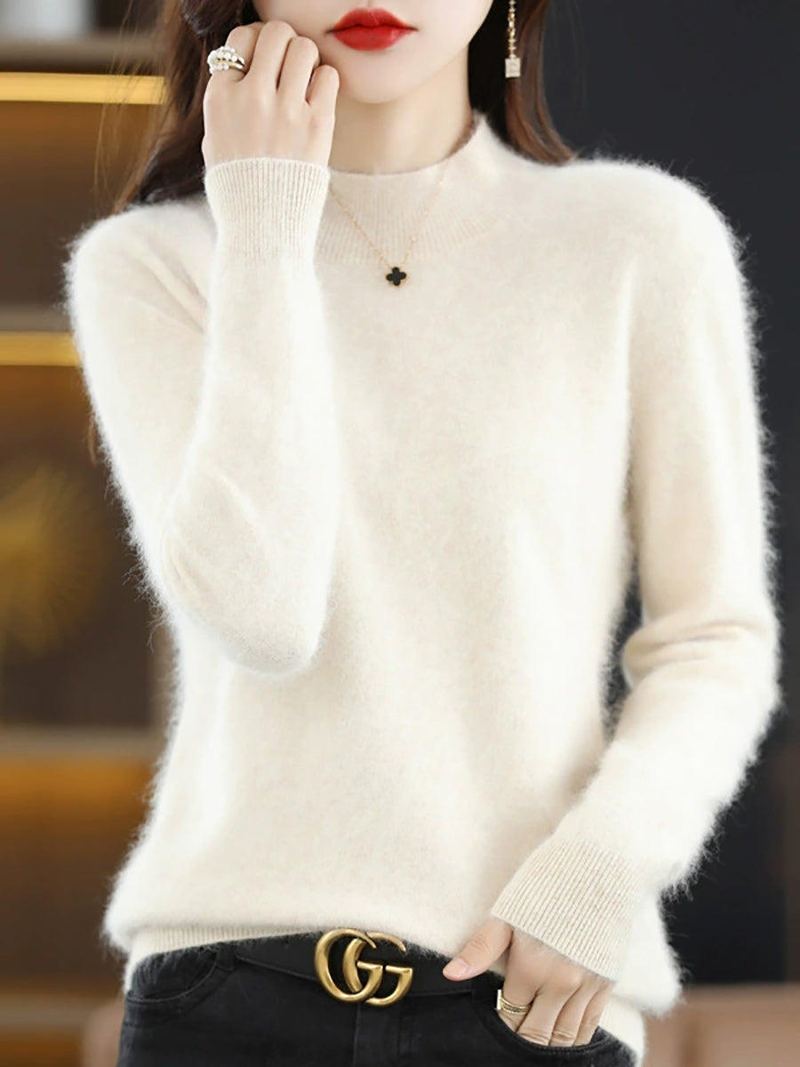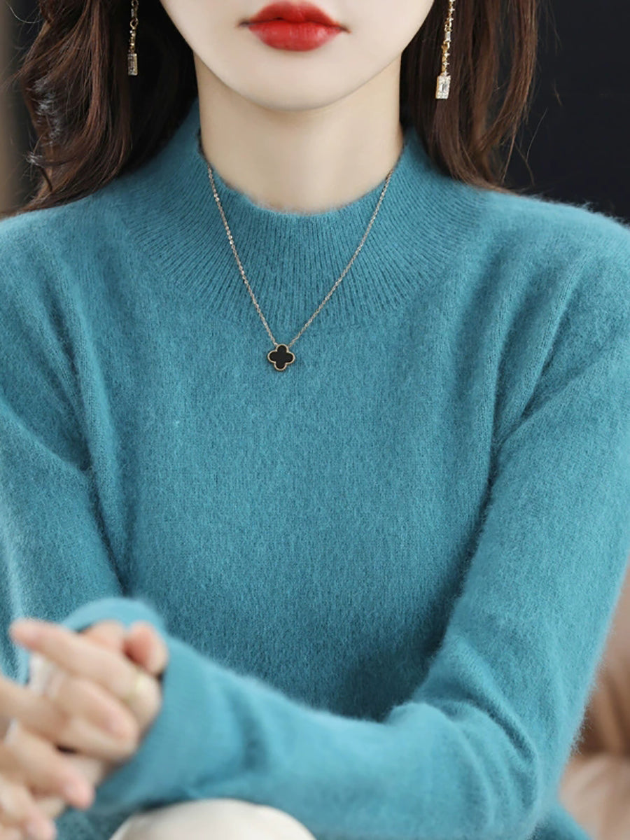 Women Casual Spring Pure Color Half-turtleneck Sweater