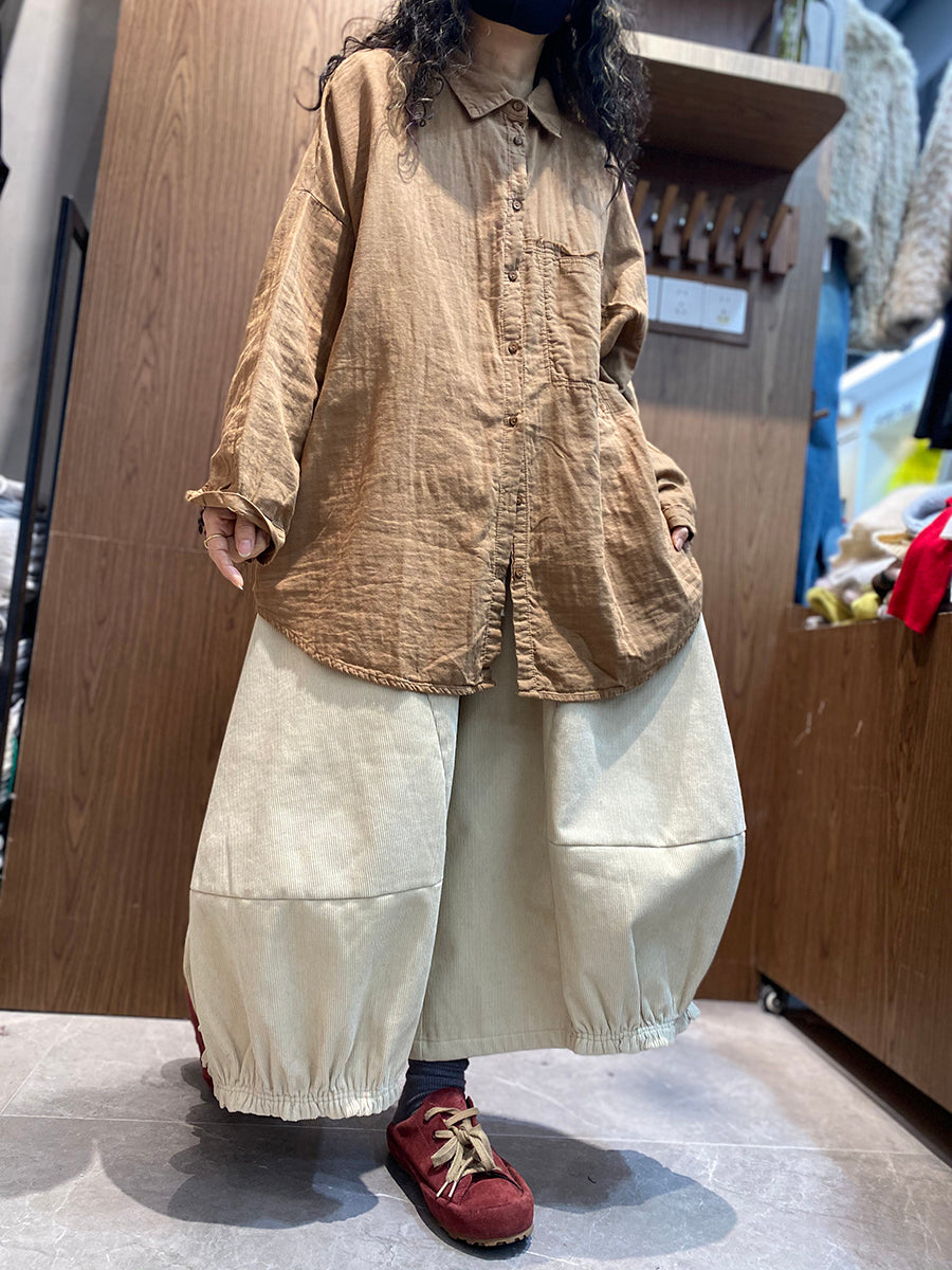 Women Spring Artsy Pure Color Turn-down Collar Shirt