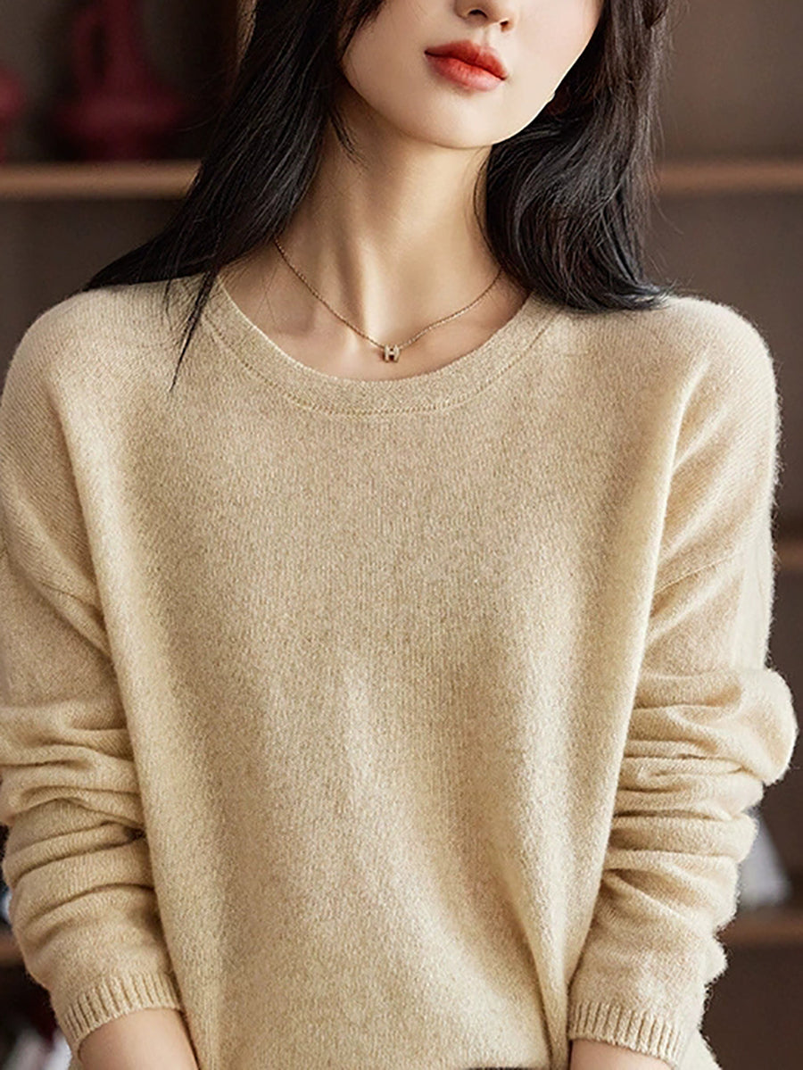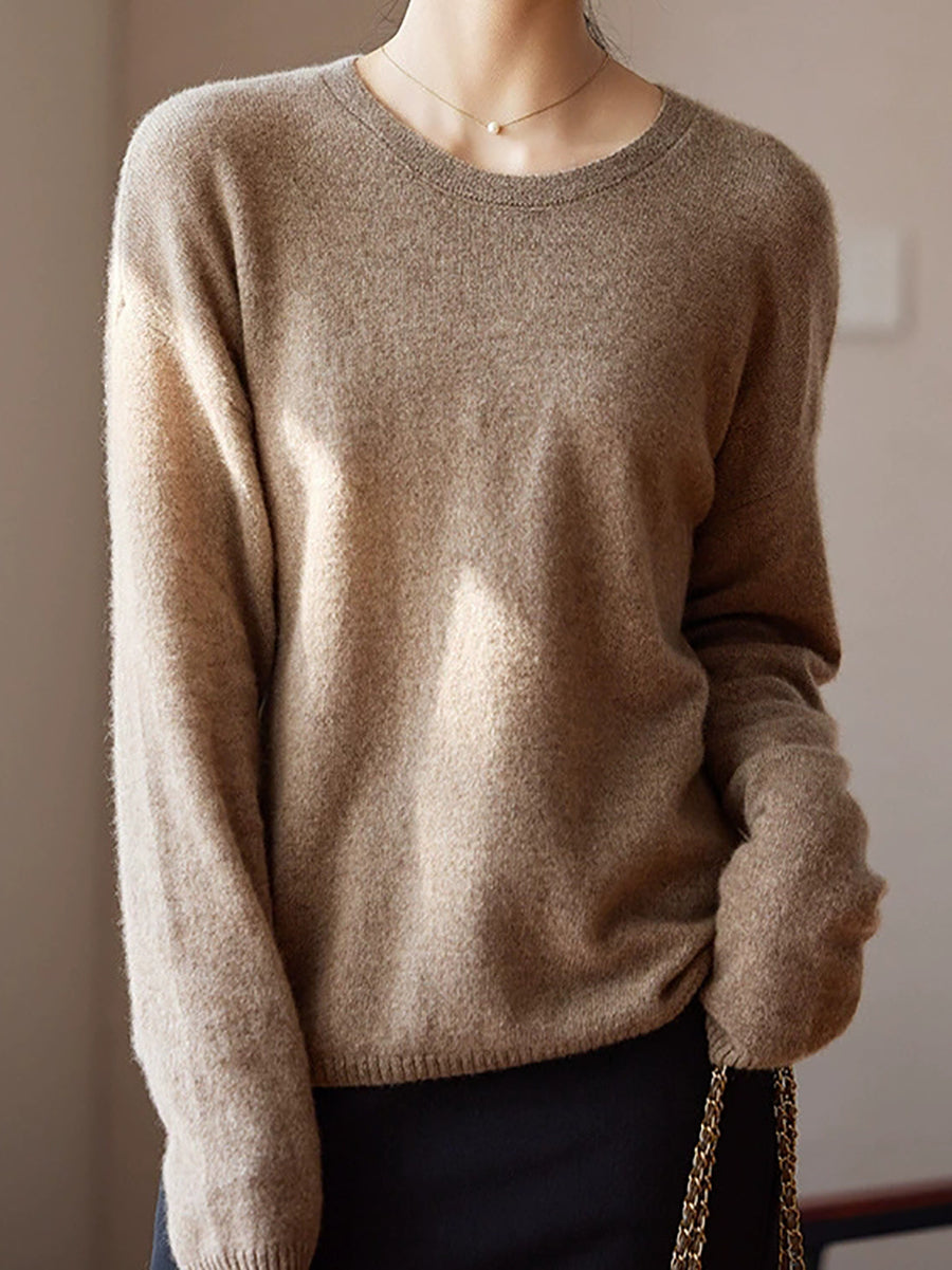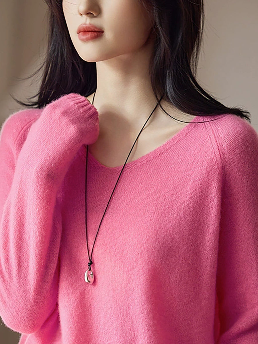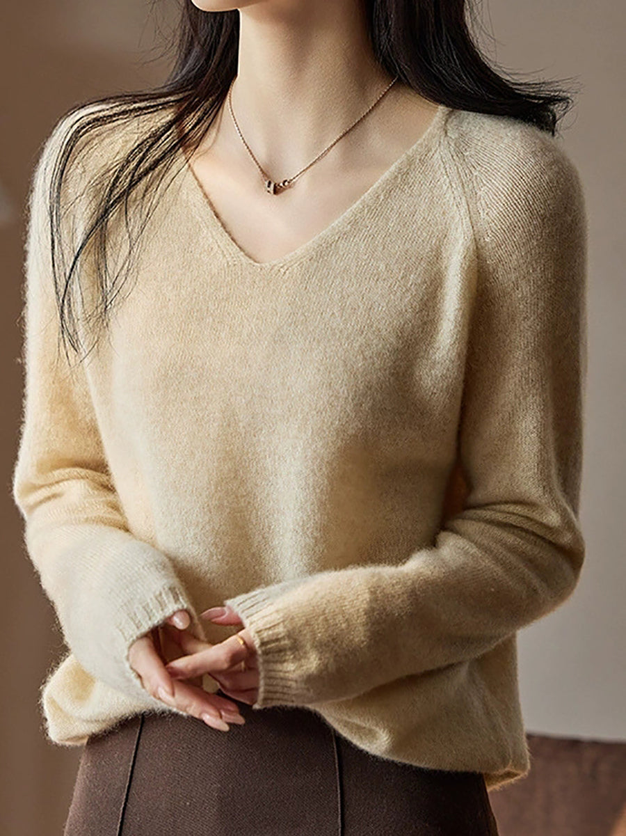 Women Spring Artsy Pure Color V-Neck Wool Sweater
