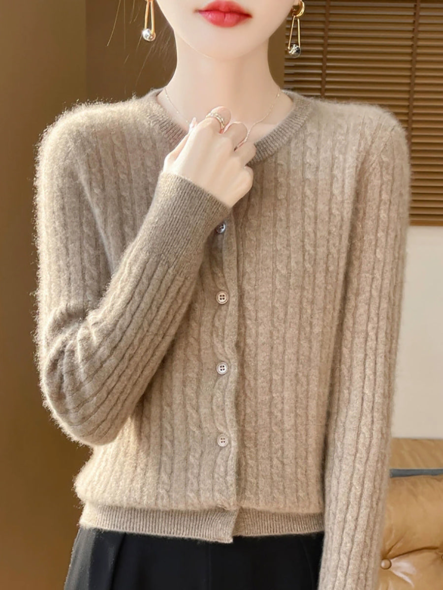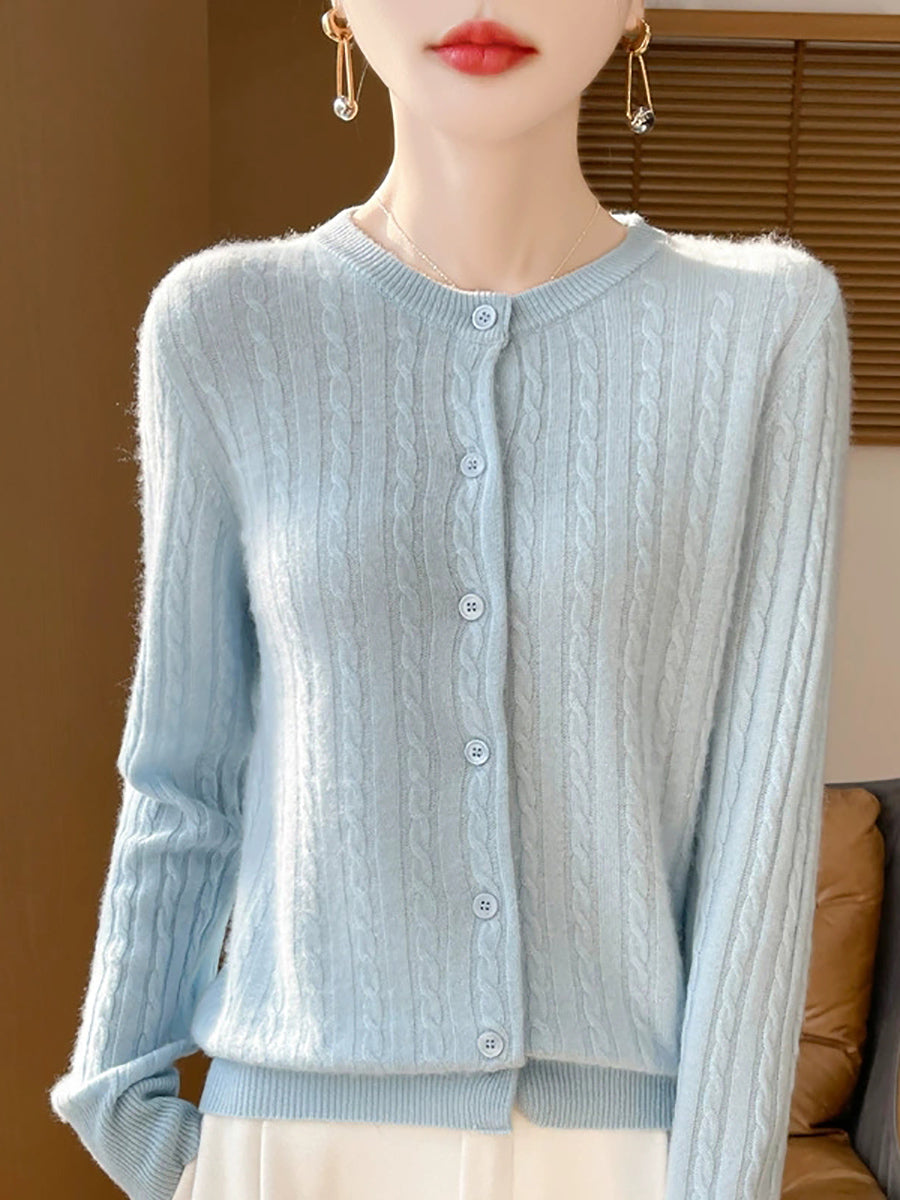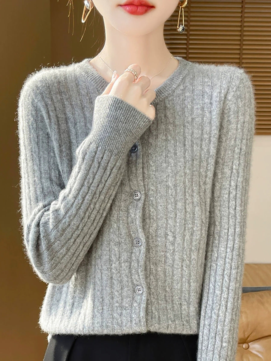 Women Spring Casual Pure Color O-Neck Sweater