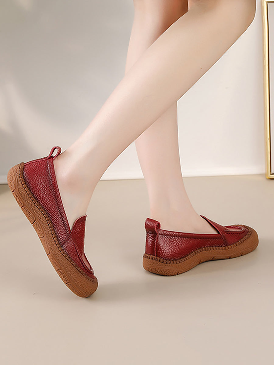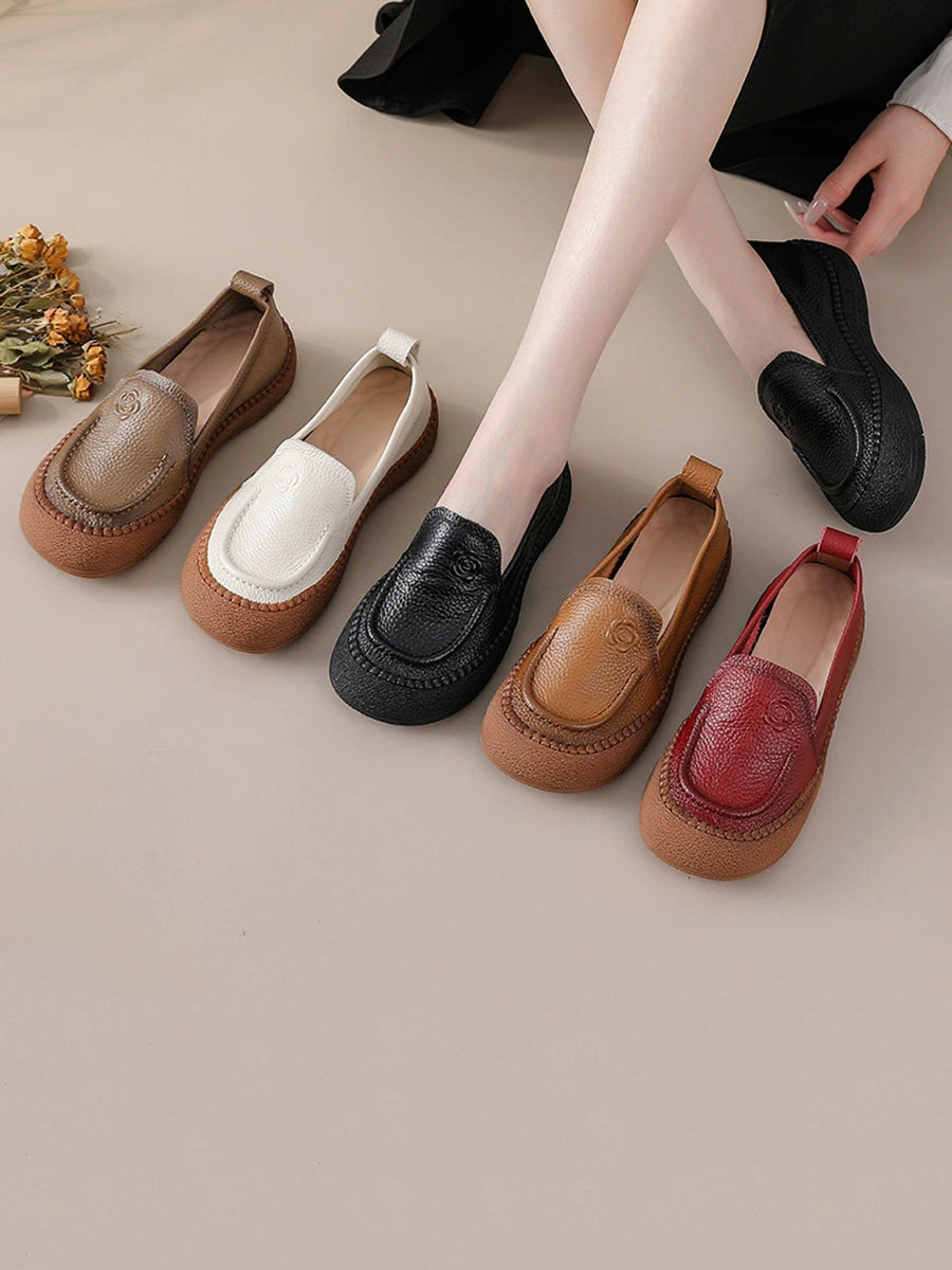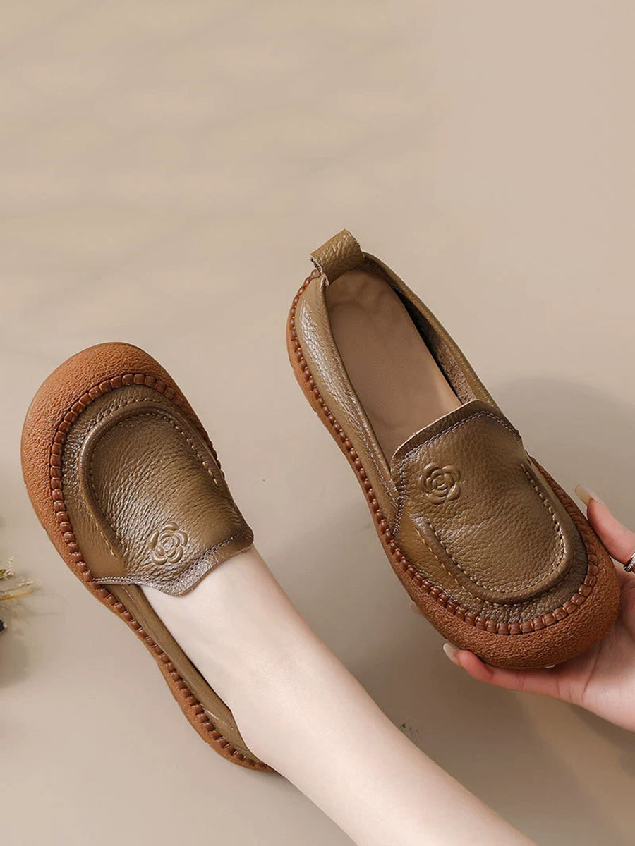Women Spring Genuine Leather Flower Embossing Flat Shoes