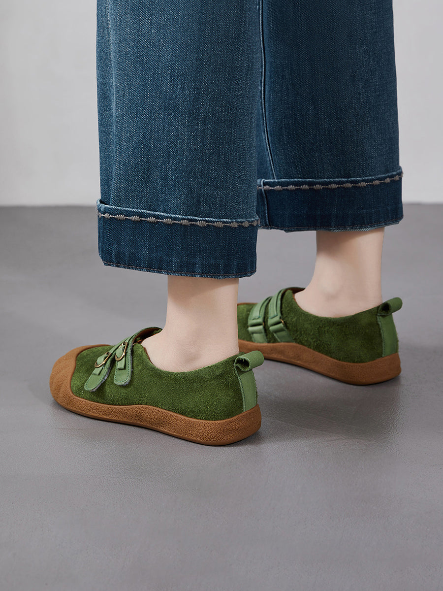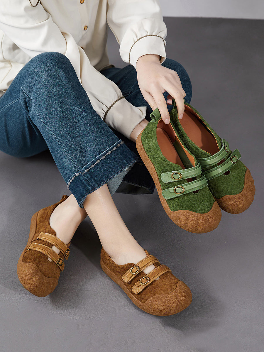 Women Spring Retro Genuine Leather Flat Shoes