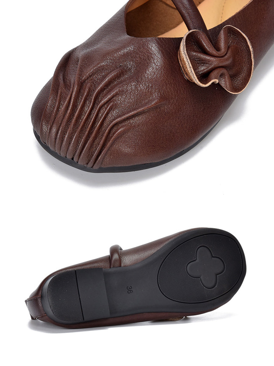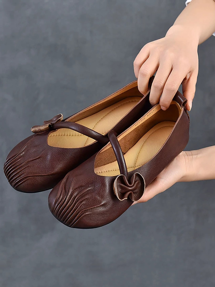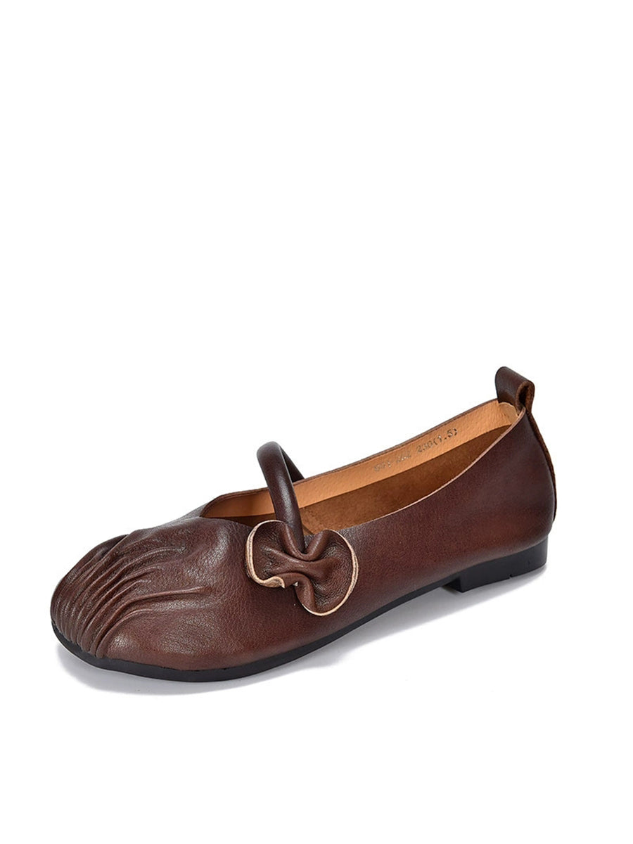 Women Spring Retro Genuine Leather Low Heel Shoes