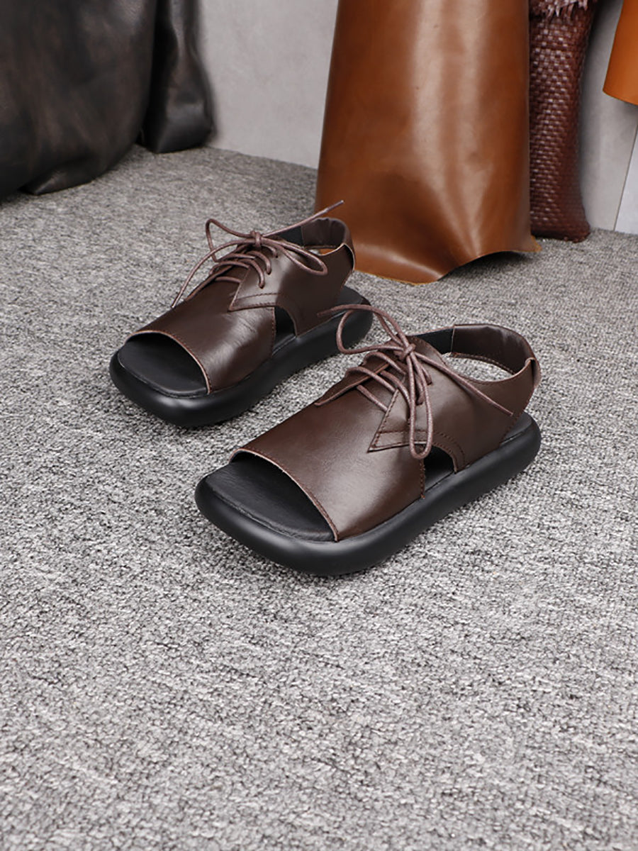 Women Summer Genuine Leather Flatform Sandals