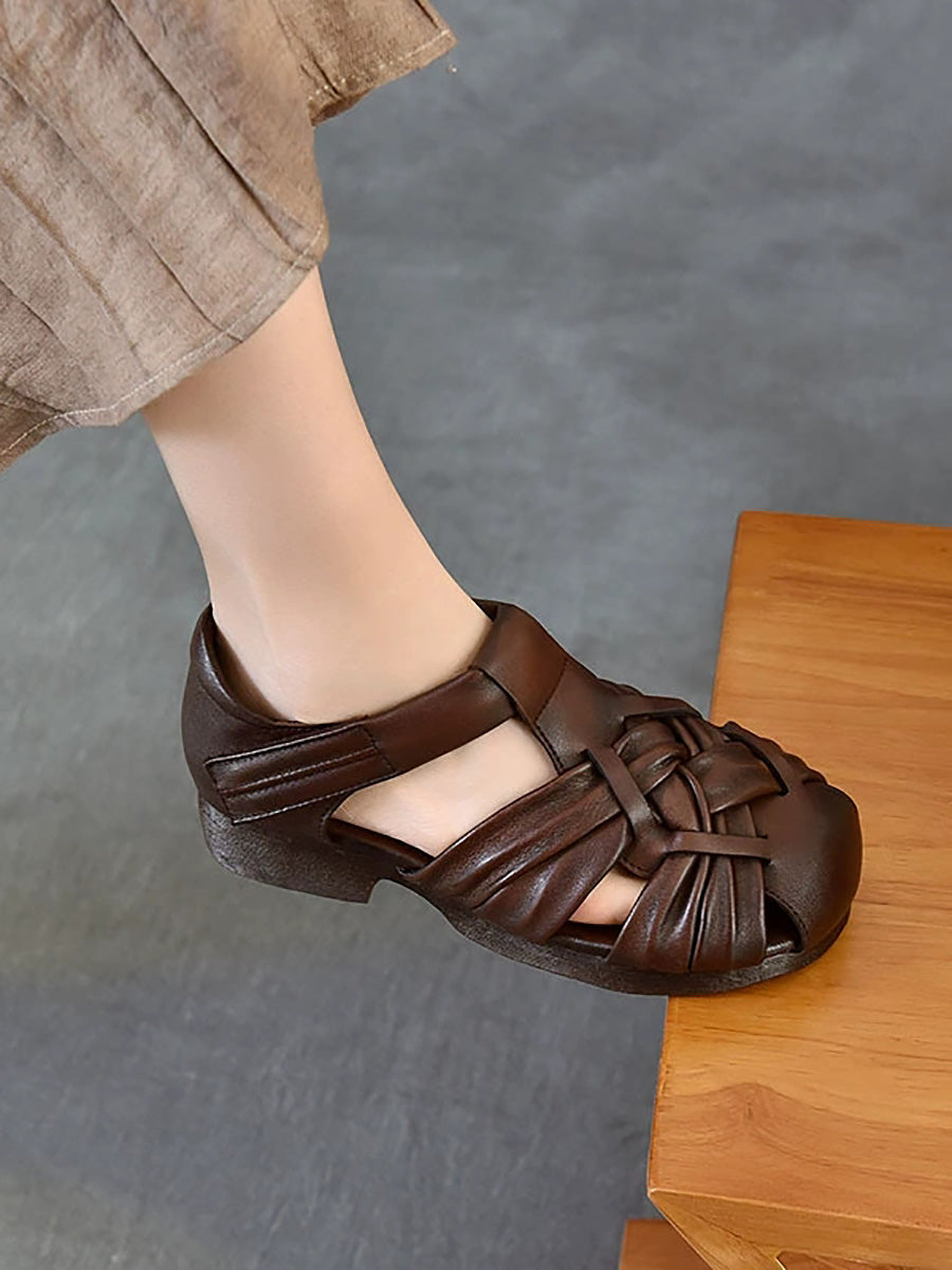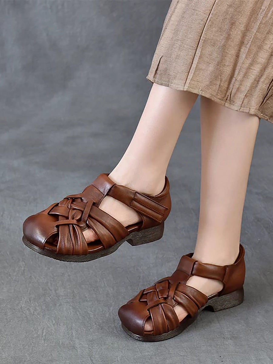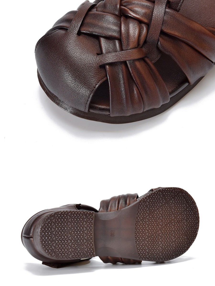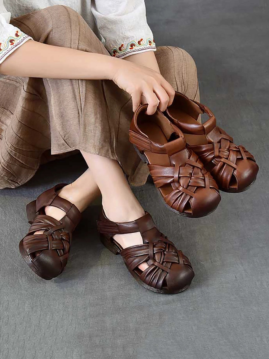 Women Summer Genuine Leather Weave Sandals