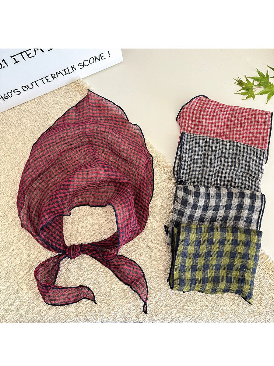 Women Summer Stripe Plaid Soft Triangle Scarf
