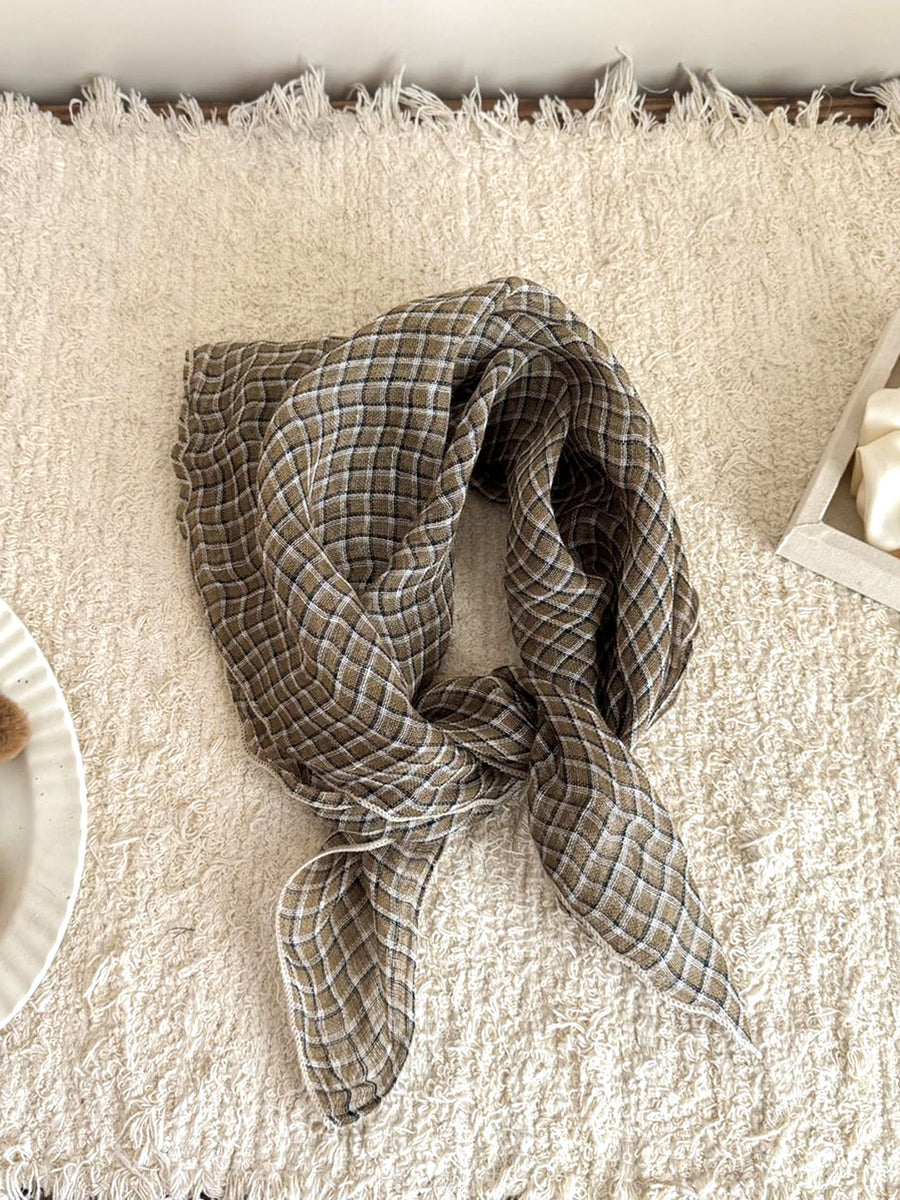 Women Summer Vintage Plaid Stripe Triangle Scarf