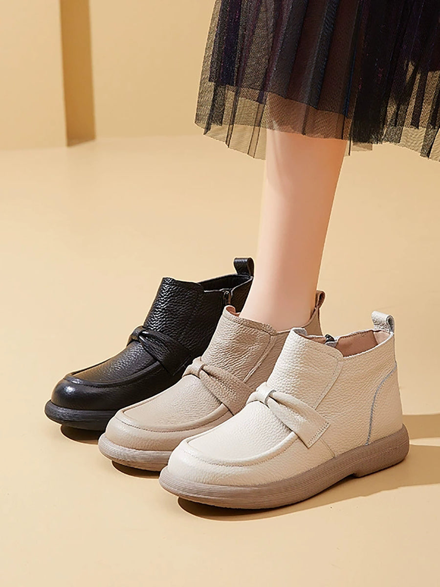 Women Vintage Genuine Leather Fleece-lined Ankle Boots
