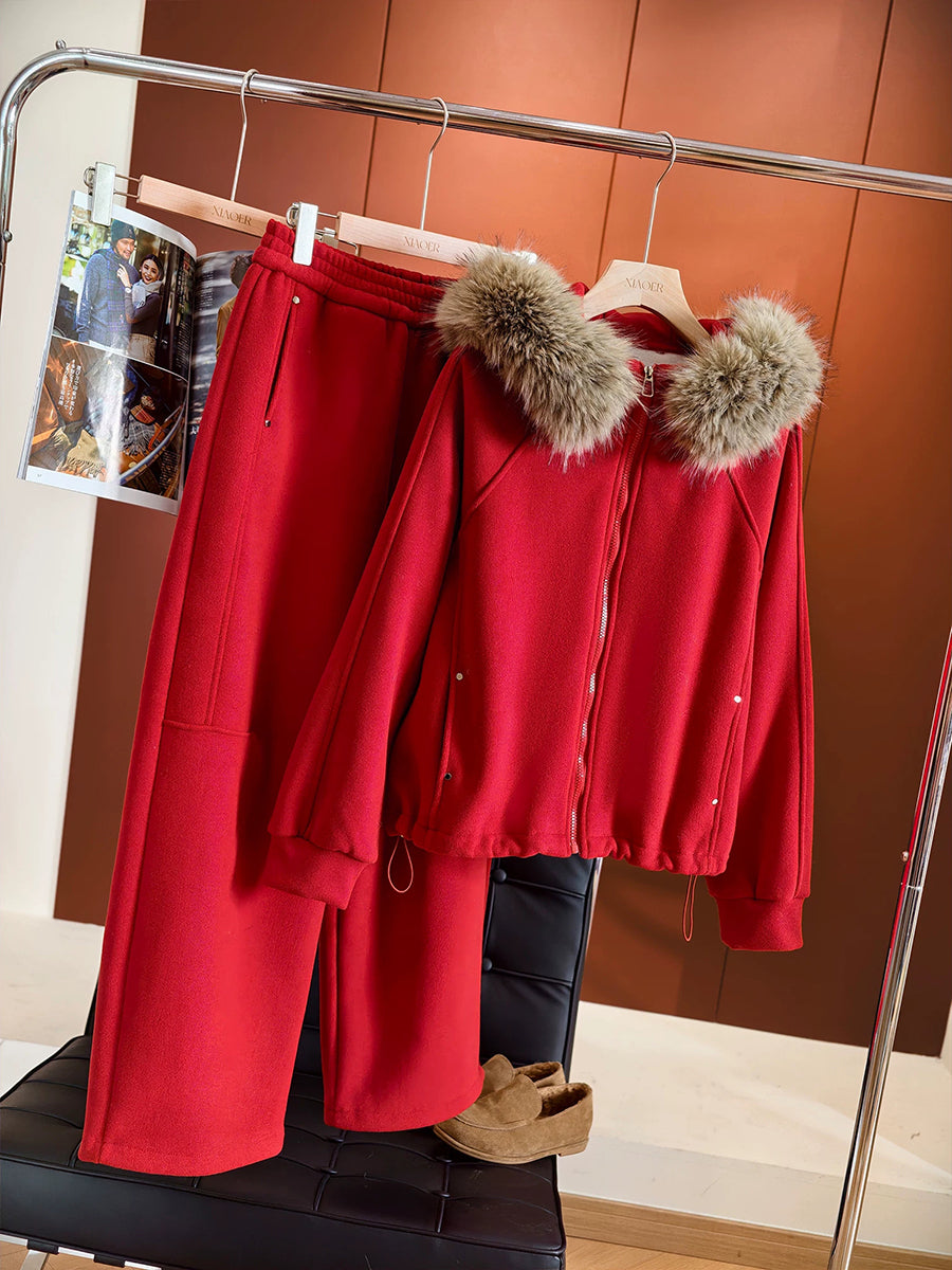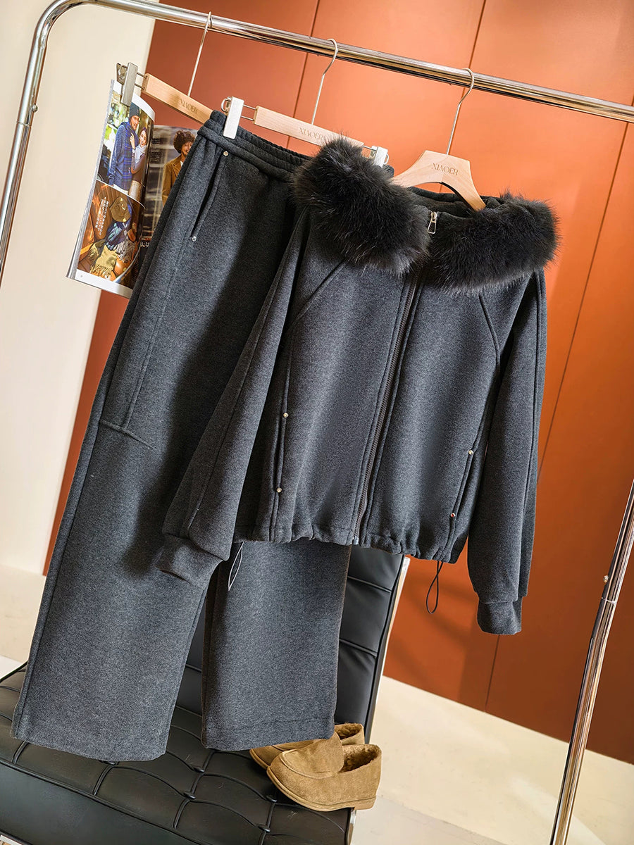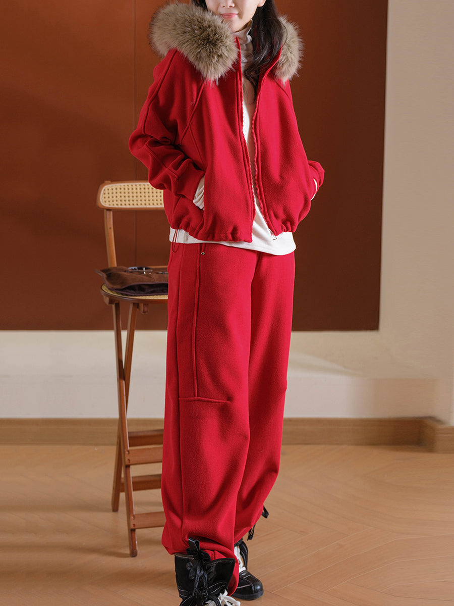 Women Winter Casual Pure Color Hooded Suits