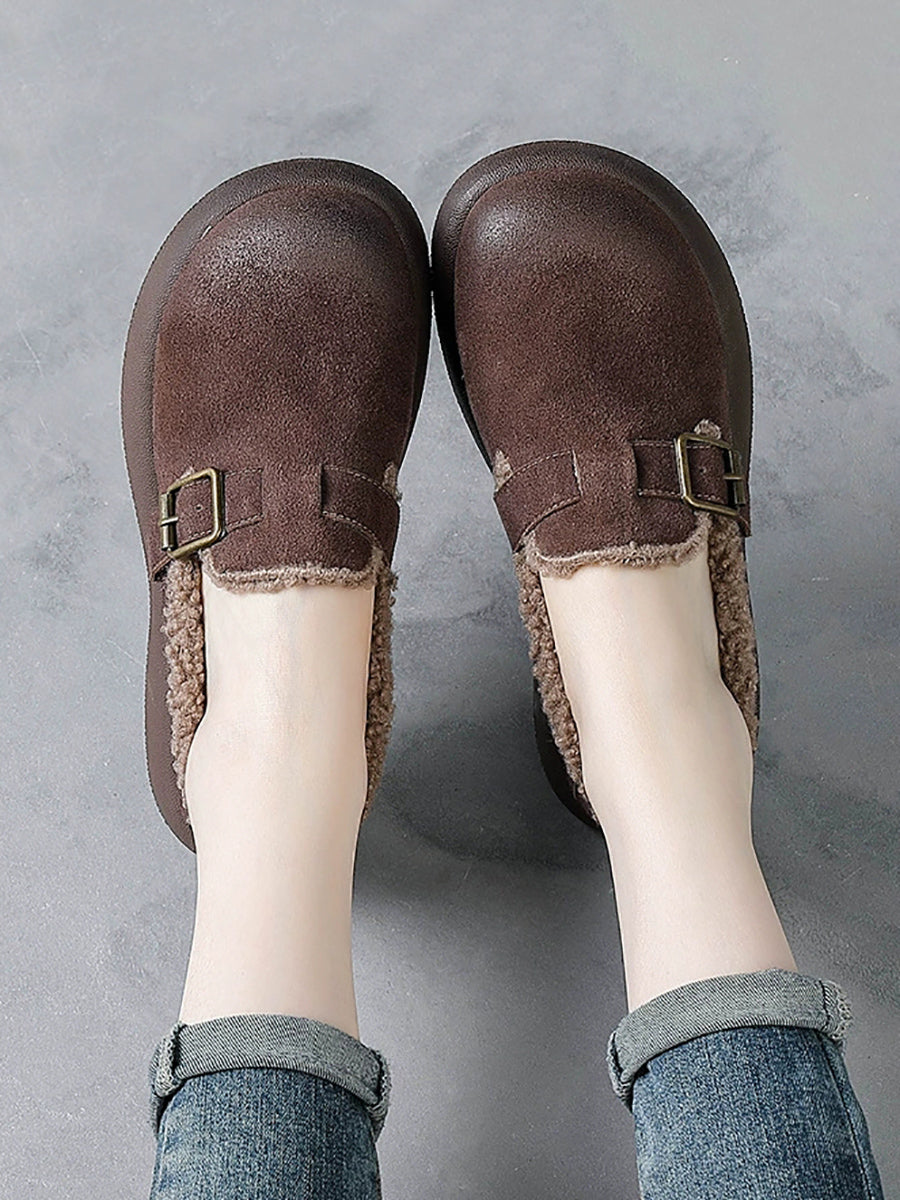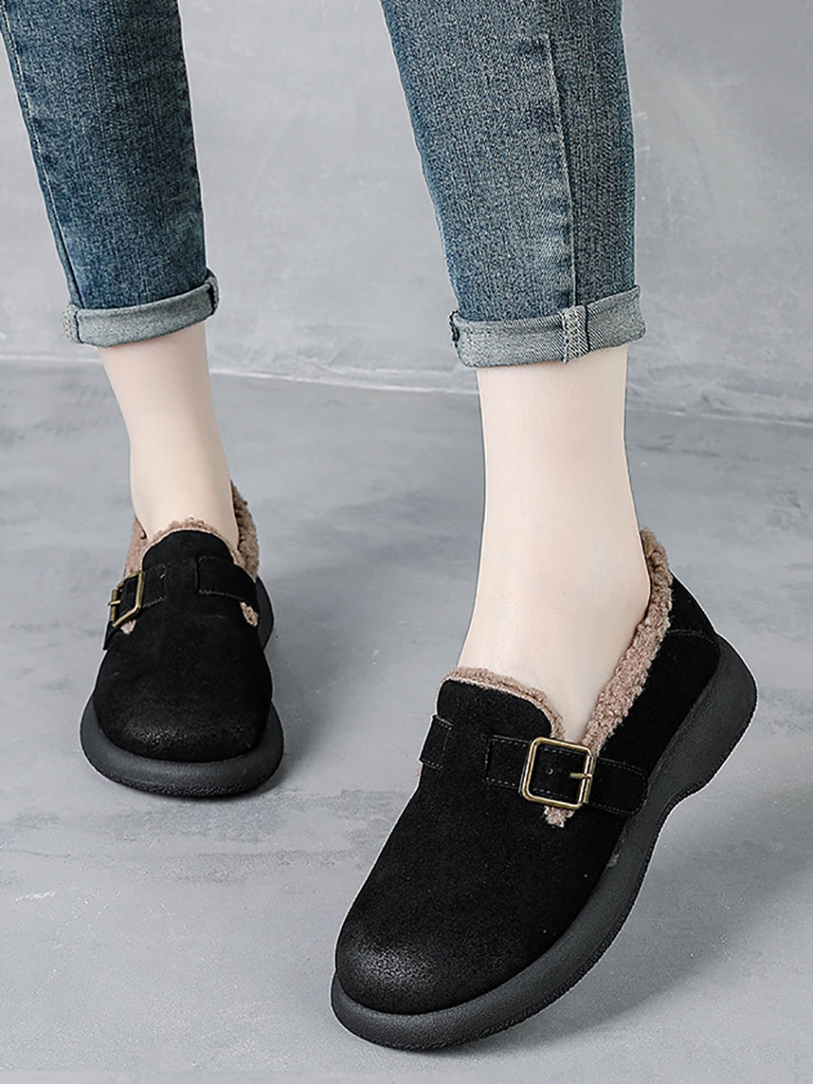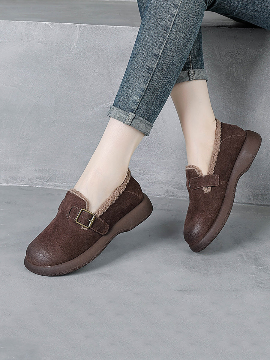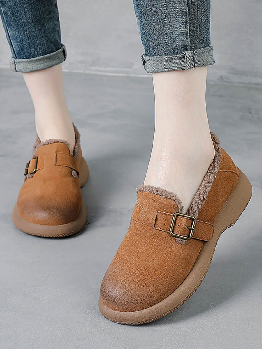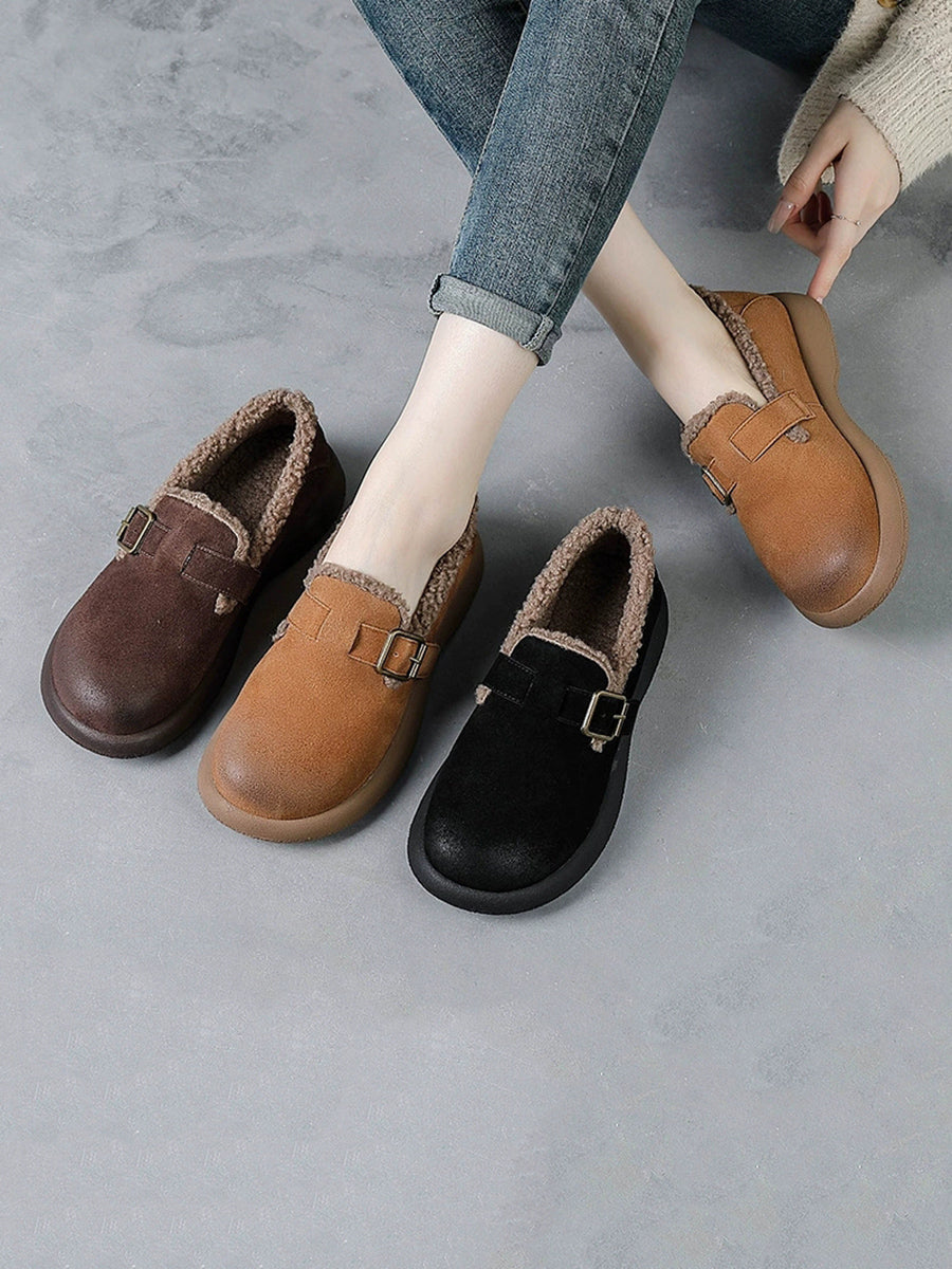 Women Winter Genuine Leather Fleece-lined Platform Shoes