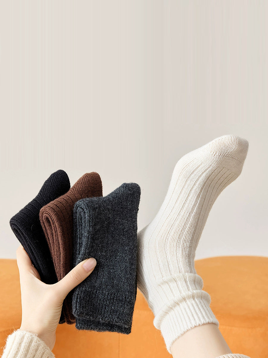 2 Paar Damen Wintersocken, künstlerisch, einfarbig, warm
