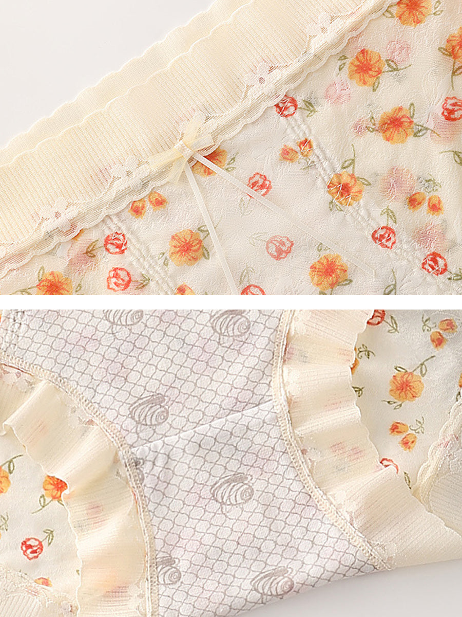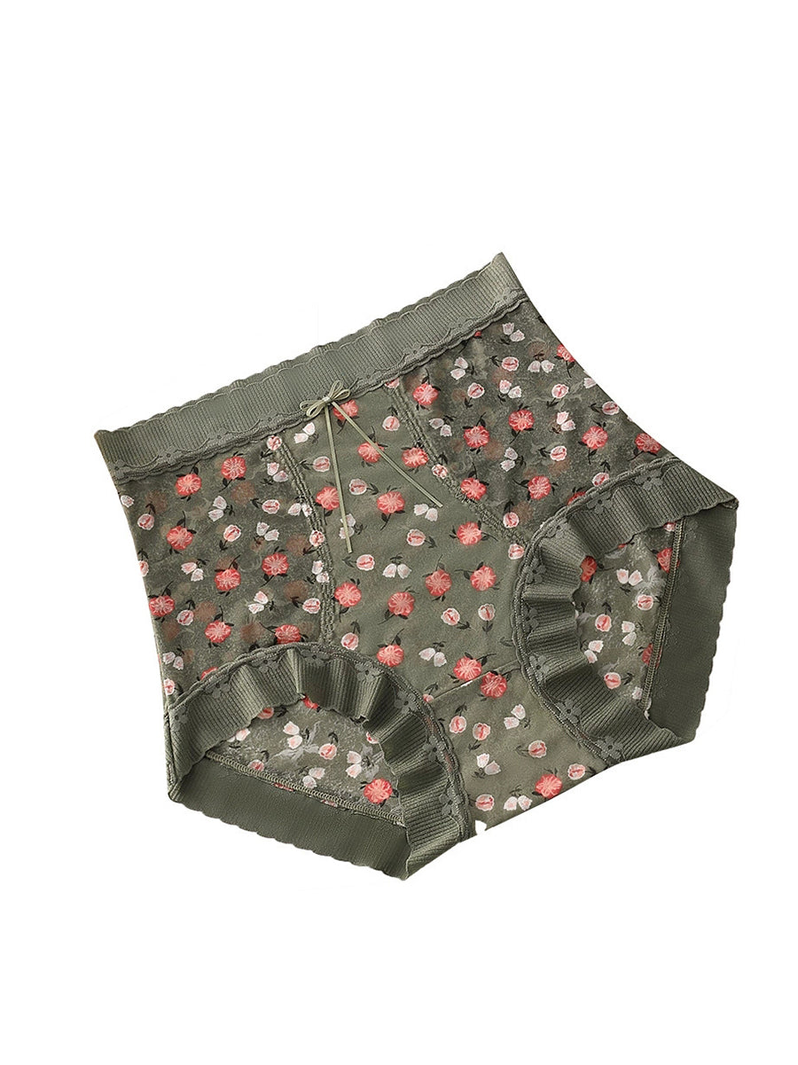 3-teiliges Damen-Unterwäsche-Set mit künstlerischem Blumenmuster und hohem Bund