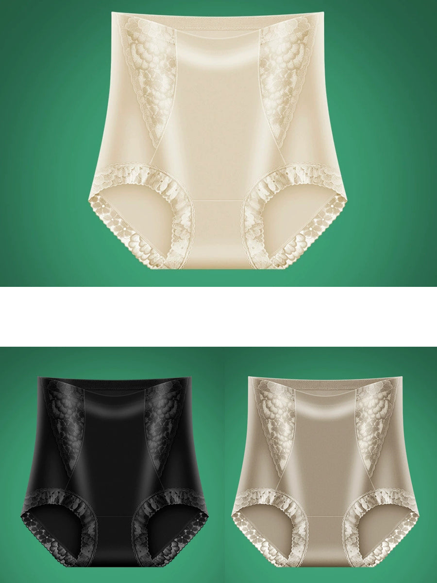 3-teiliges Set Damen-Unterwäsche aus Spitze in Unifarben mit hohem Bund