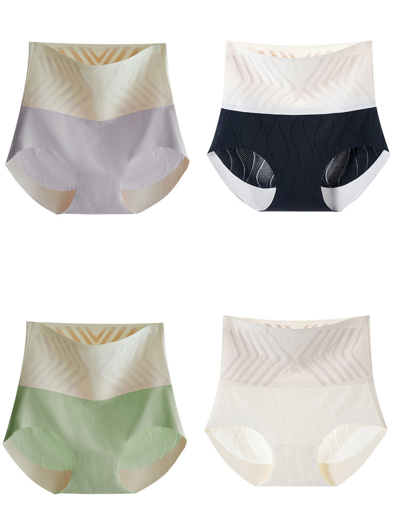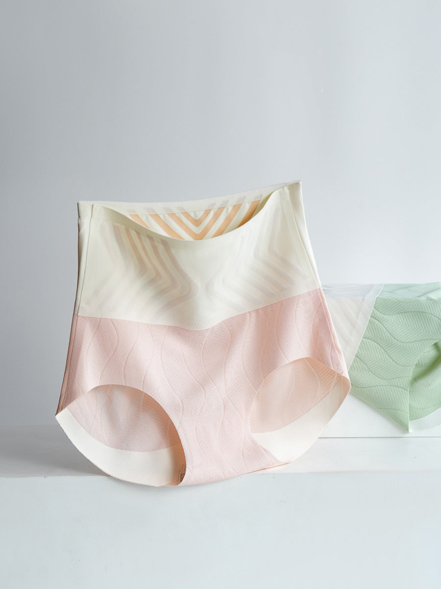 4-teilige Sommerunterwäsche für Damen mit Farbblock und hoher Taille