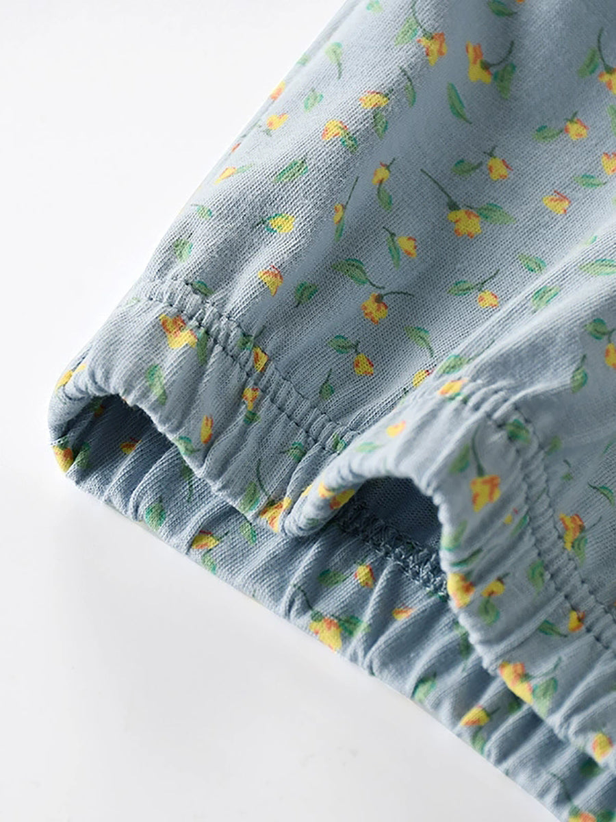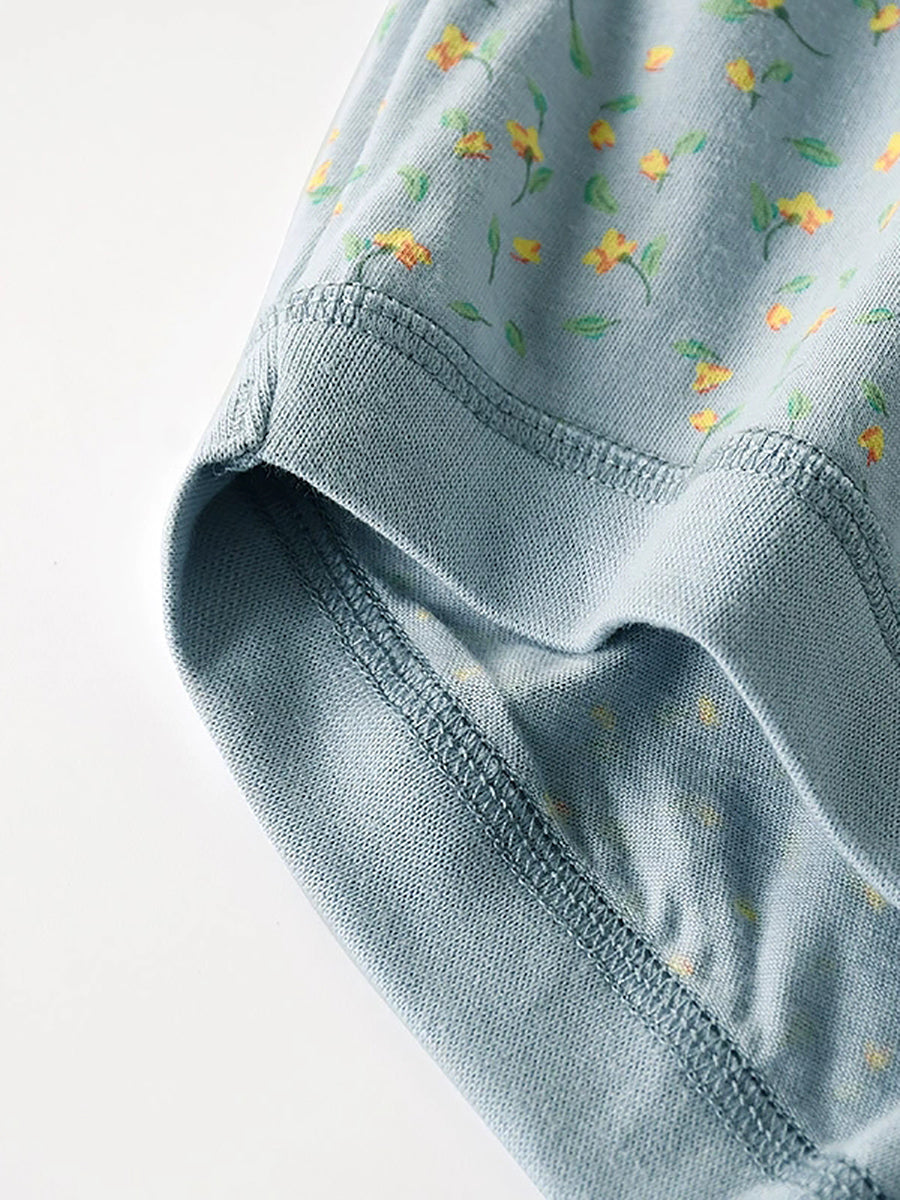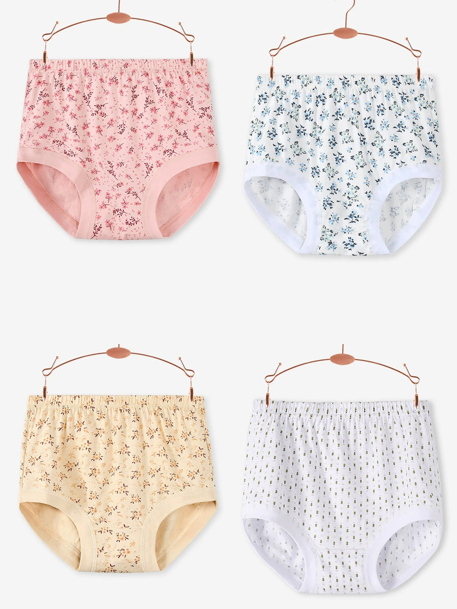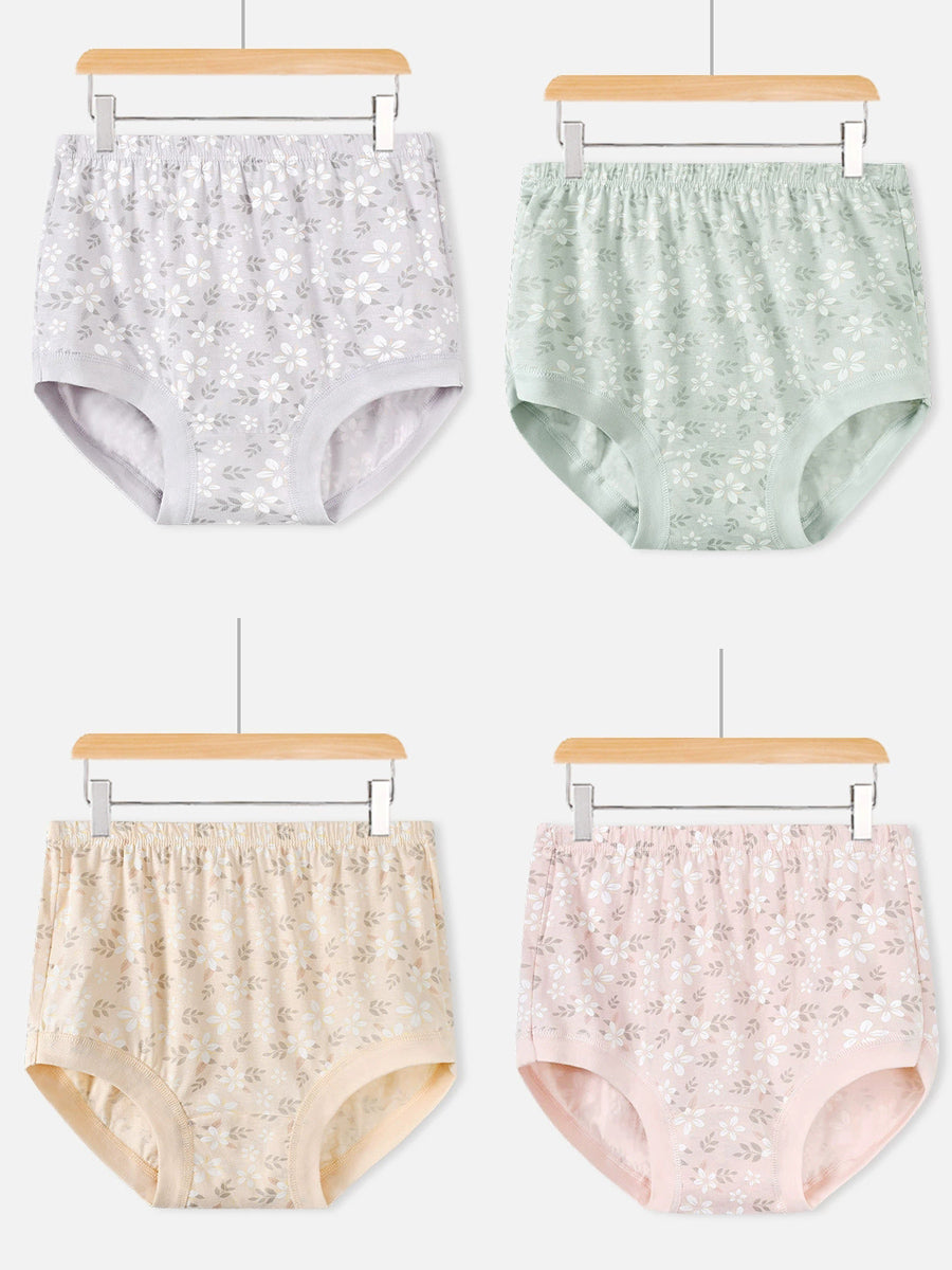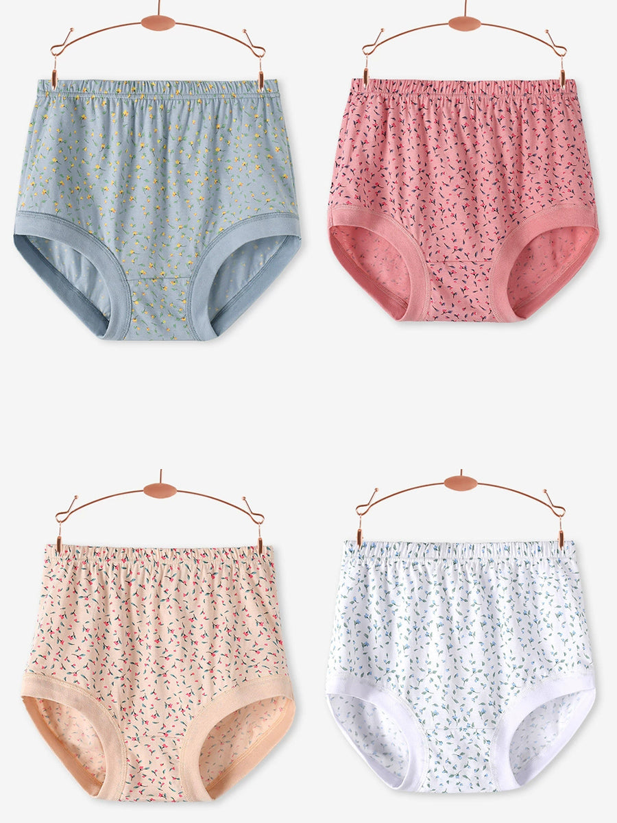 4-teiliges Set Damen-Unterwäsche mit künstlerischem Blumenmuster und hohem Bund