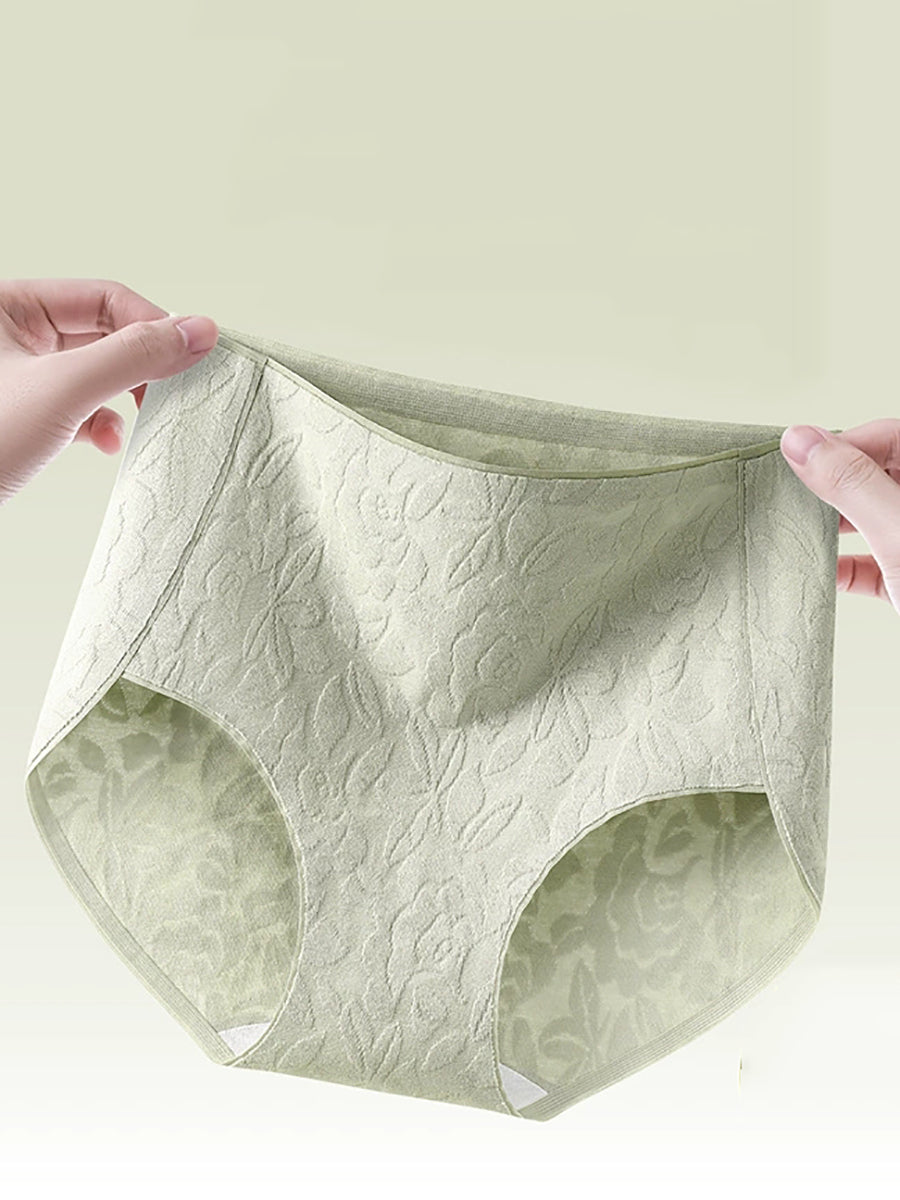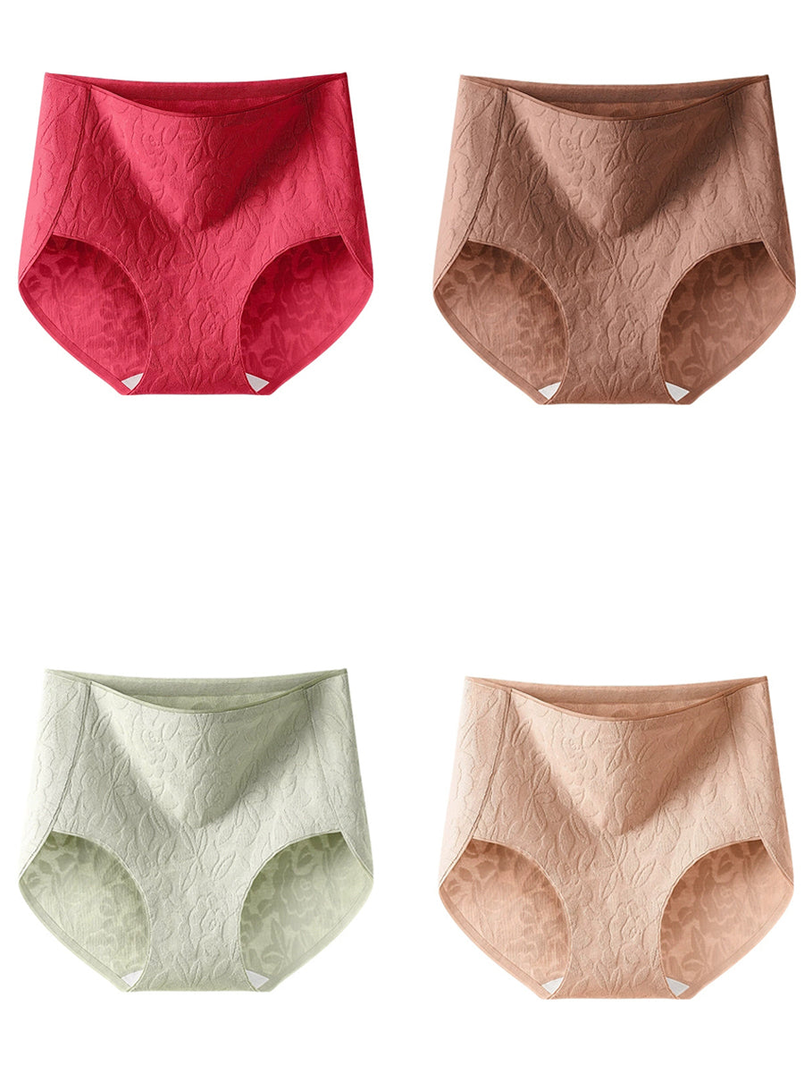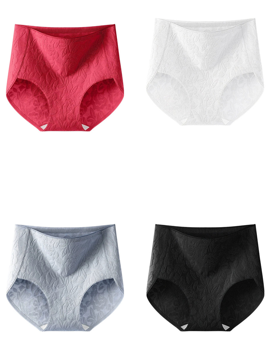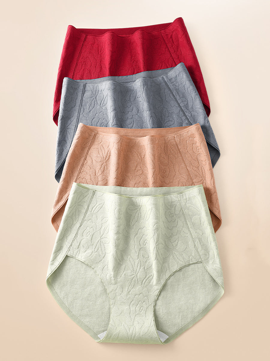 4-teiliges Damen-Unterwäsche-Set mit künstlerischem Blumen-Jacquardmuster und hohem Bund