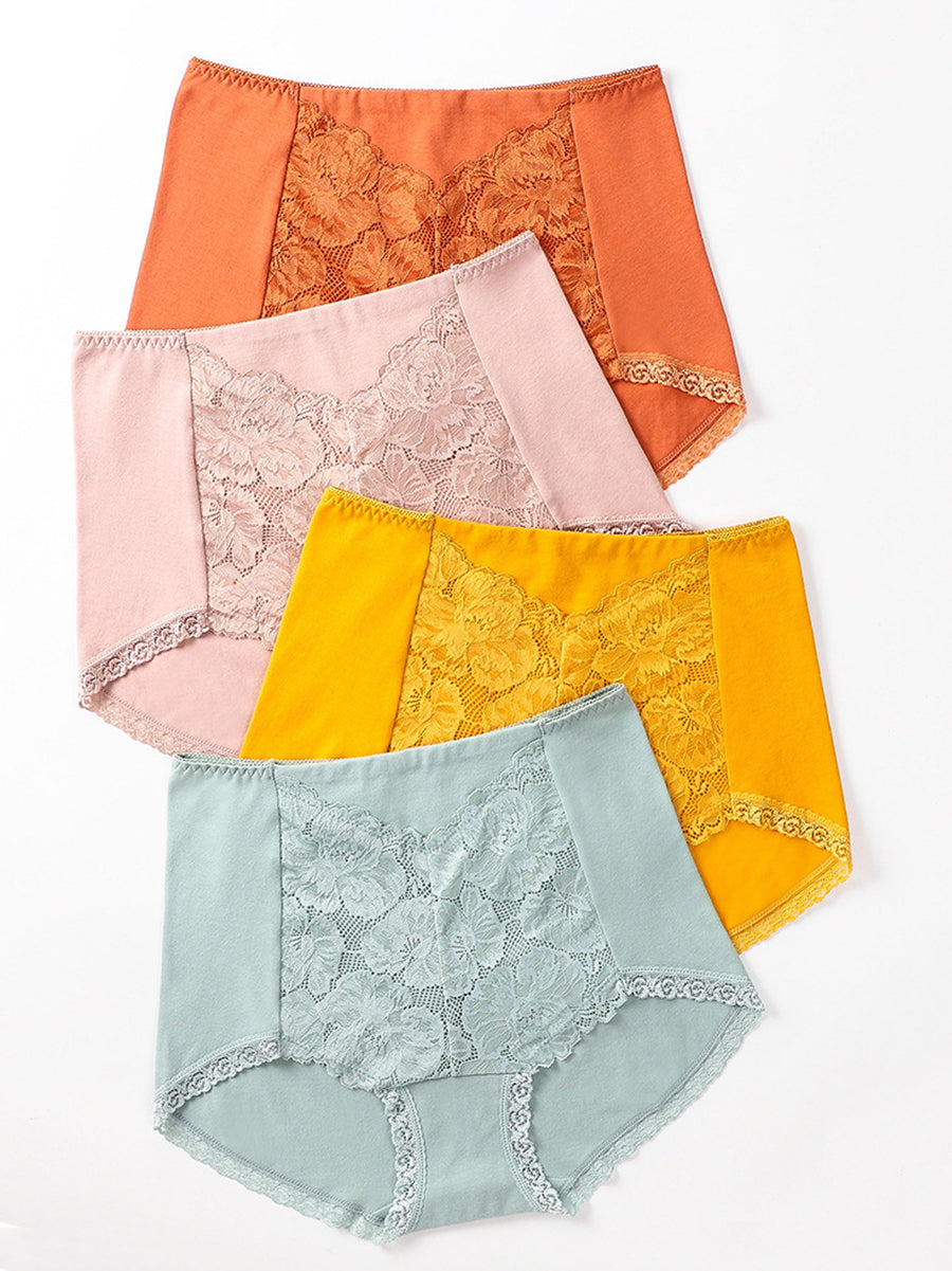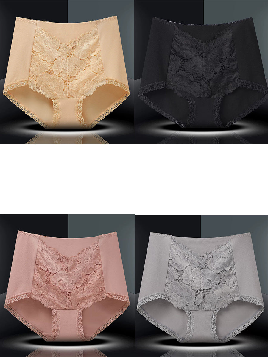 4-teiliges Damen-Unterwäsche-Set mit kunstvollem Blumenmuster und hohem Bund