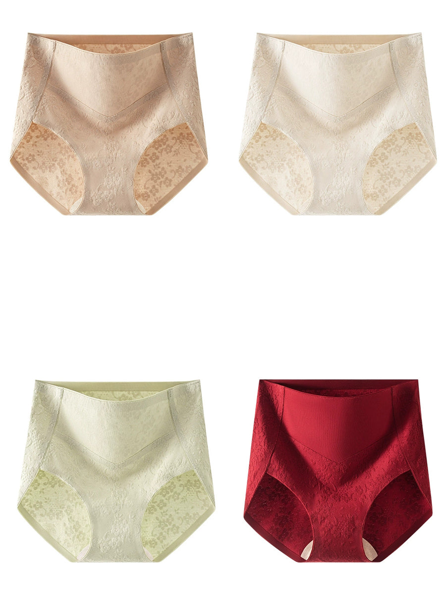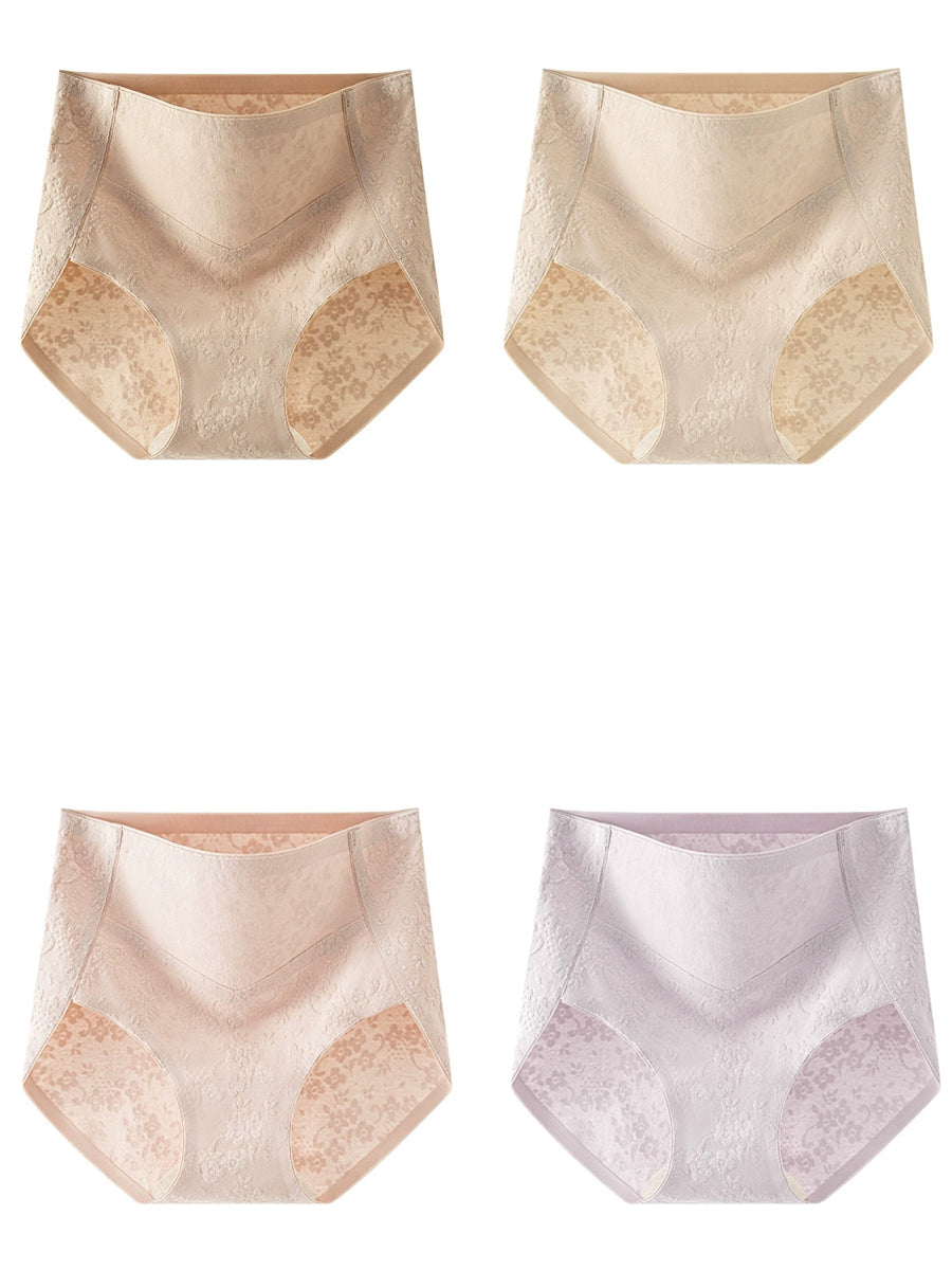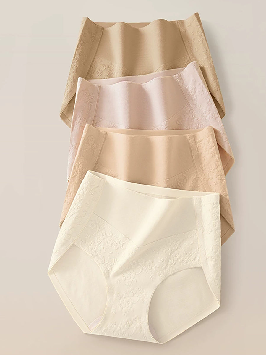 4-teiliges Set Damen-Unterwäsche mit künstlerischem Jacquard-Muster und hohem Bund