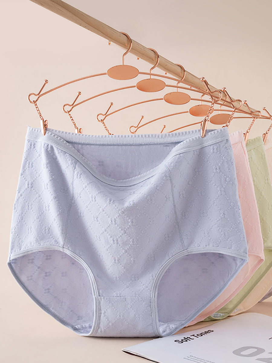 4-teiliges Set Damen-Unterwäsche mit künstlerischem Jacquard-Muster und hohem Bund