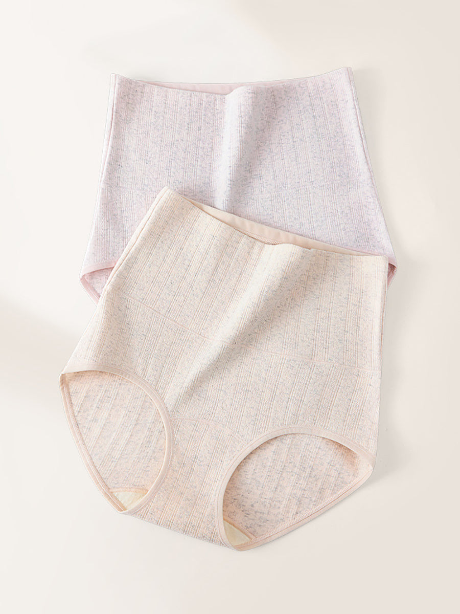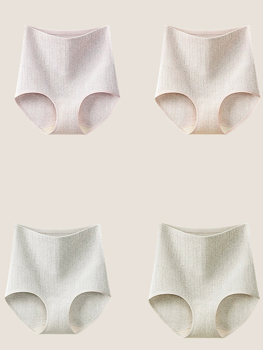 4-teiliges Set Damen-Unterwäsche in künstlerischen, einfarbigen Farben mit hohem Bund