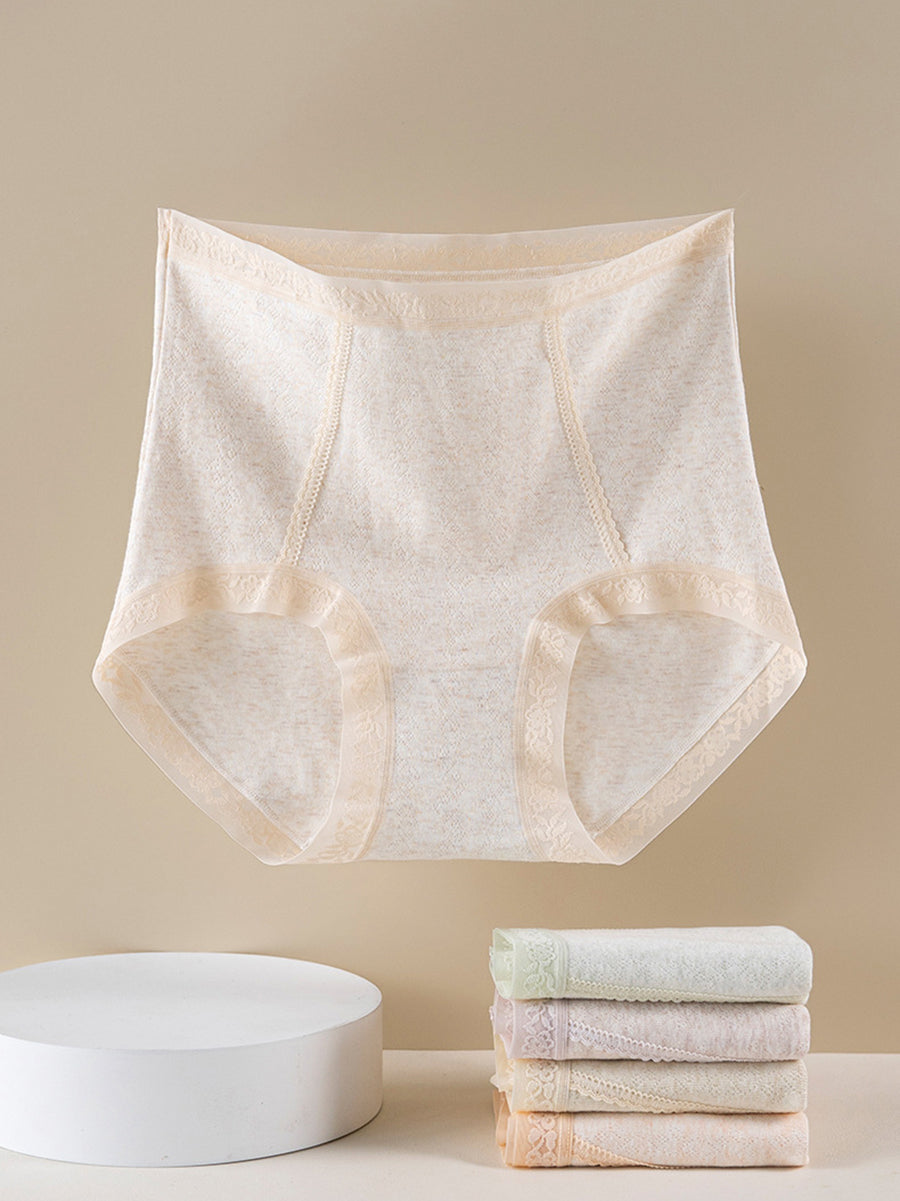 4-teiliges Set Damen-Unterwäsche in künstlerischen, einfarbigen Farben mit hohem Bund