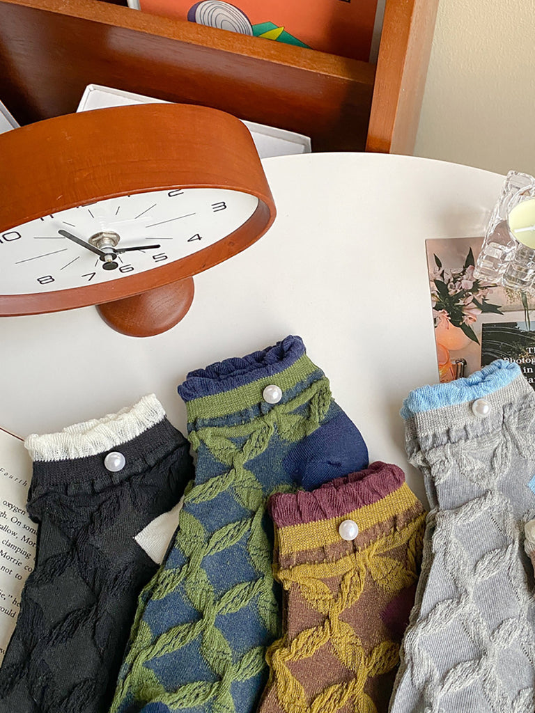 5 Paar Damen Artsy Rhomboids Colorblock Baumwollsocken