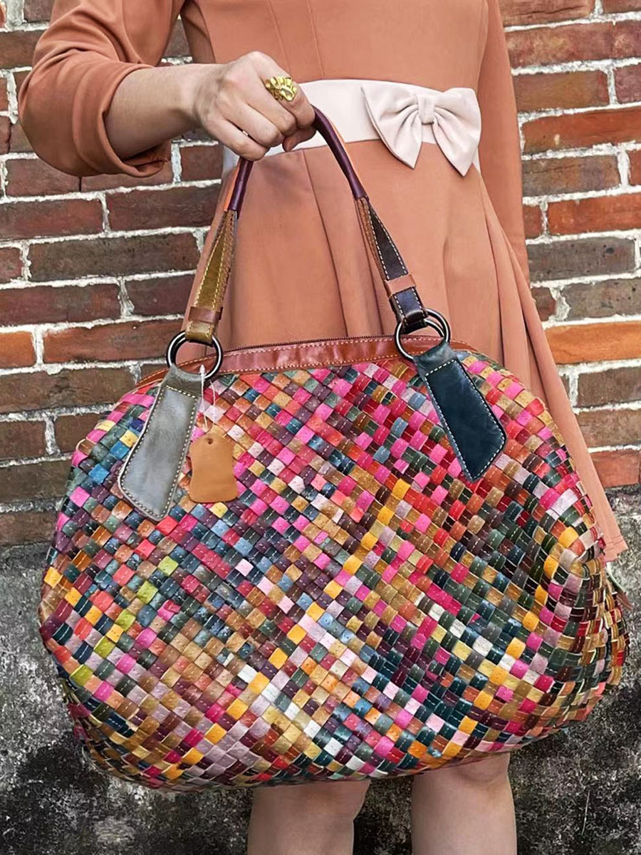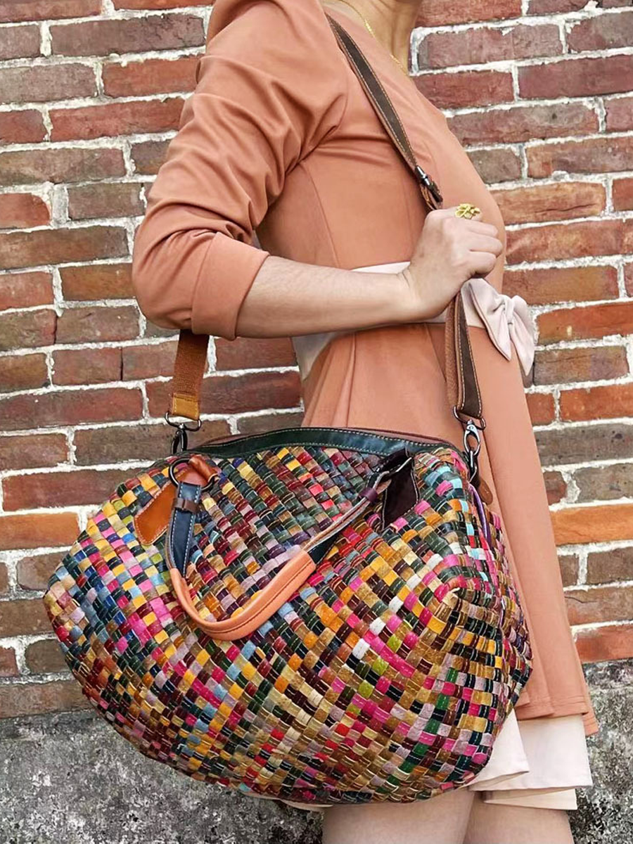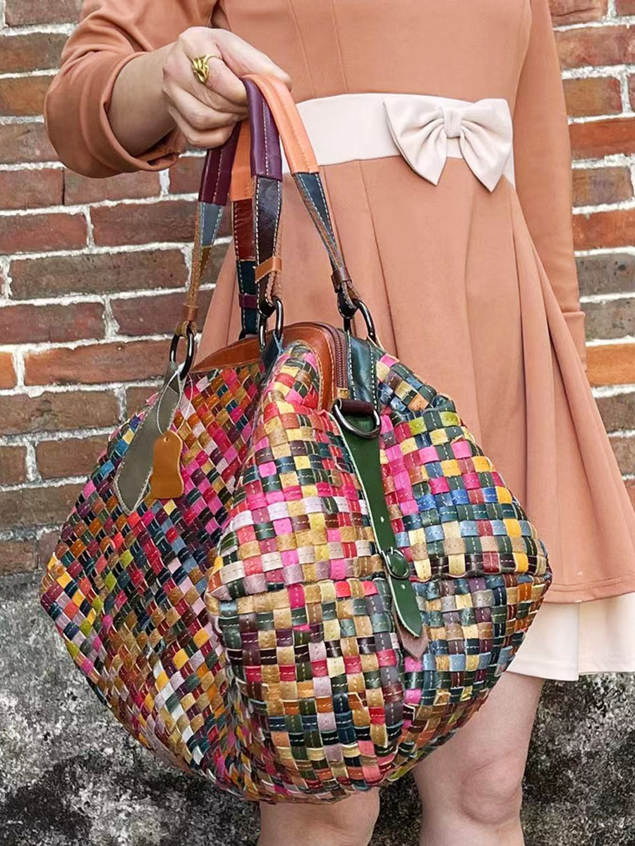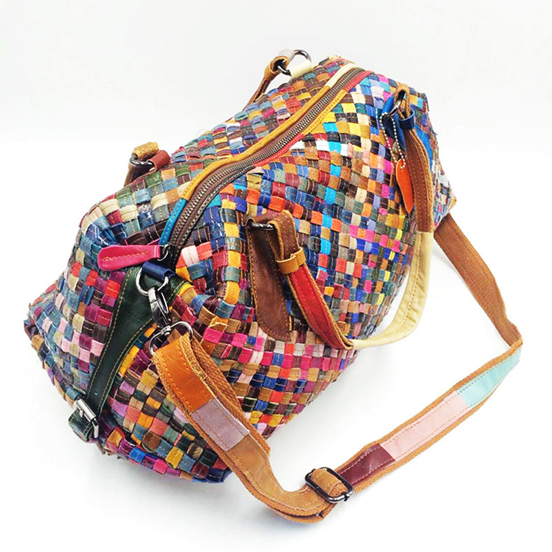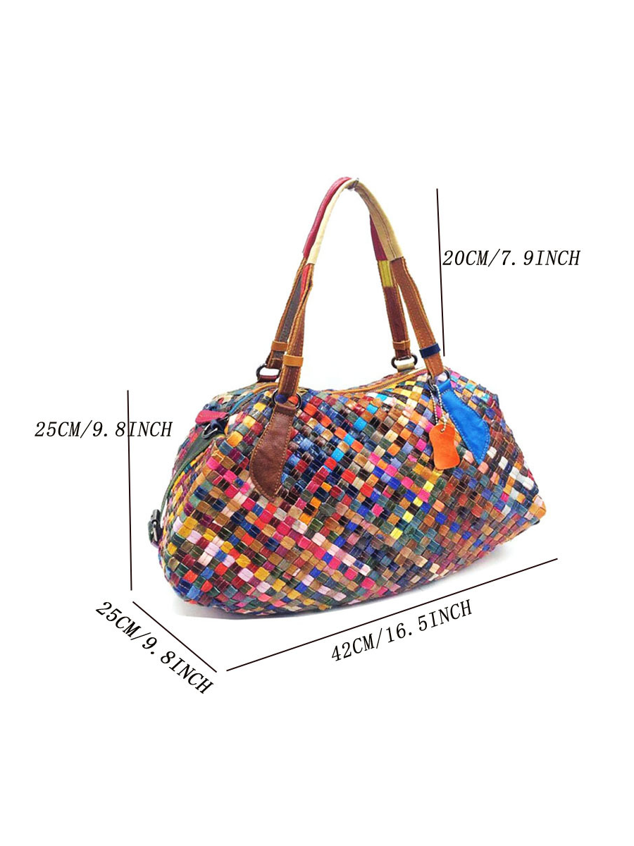 Diese farbenfrohe Damen-Umhängetasche aus Leder ist perfekt für Partys oder den Urlaub. Es verfügt über zwei Griffe zum einfachen Tragen und ein Karomuster für einen stilvollen Look. Die Tasche besteht aus Leder und verfügt über einen Reißverschluss für einfachen Zugriff.