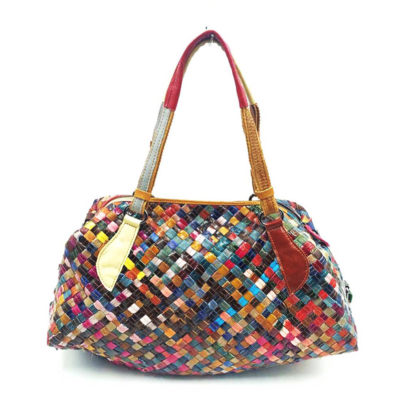 Bunte Damen-Umhängetasche aus Leder