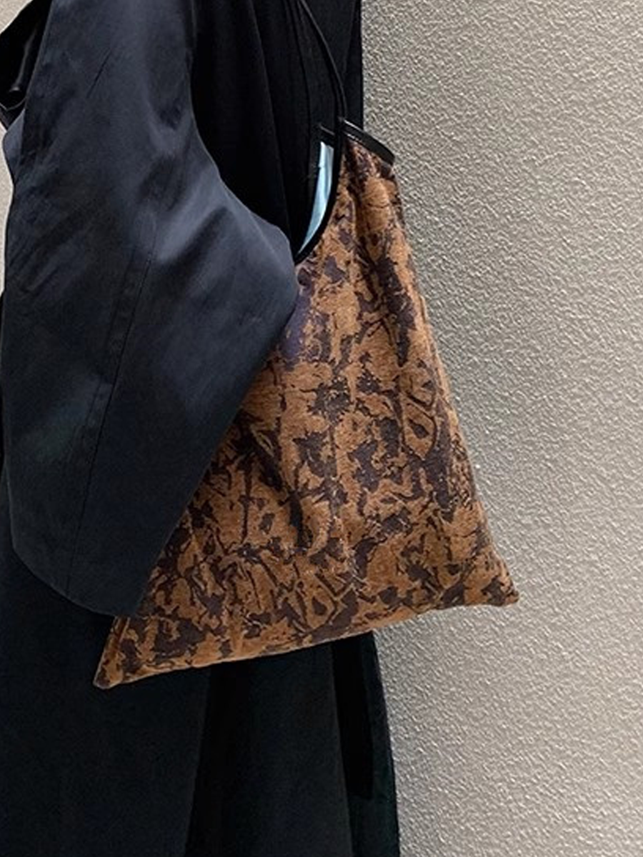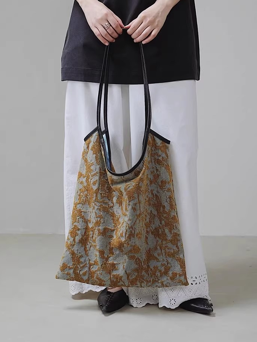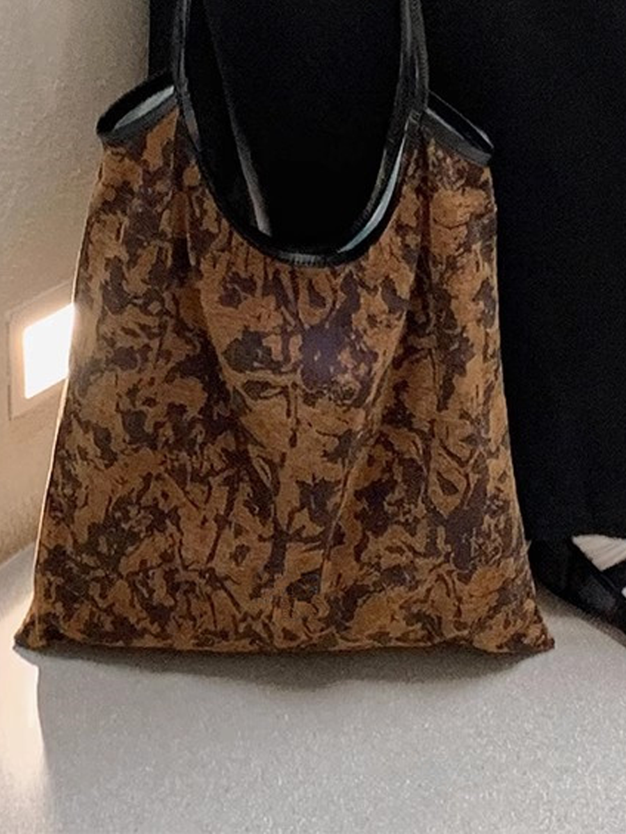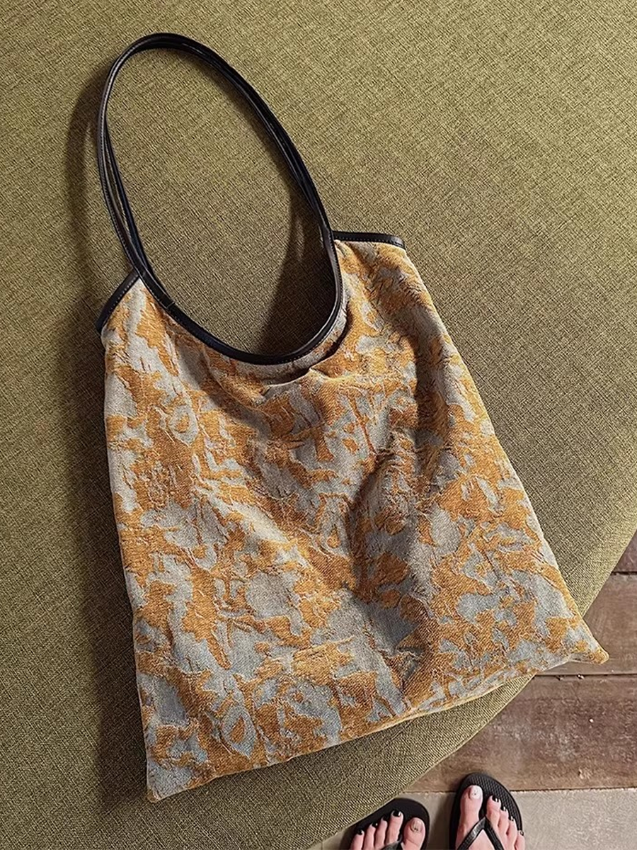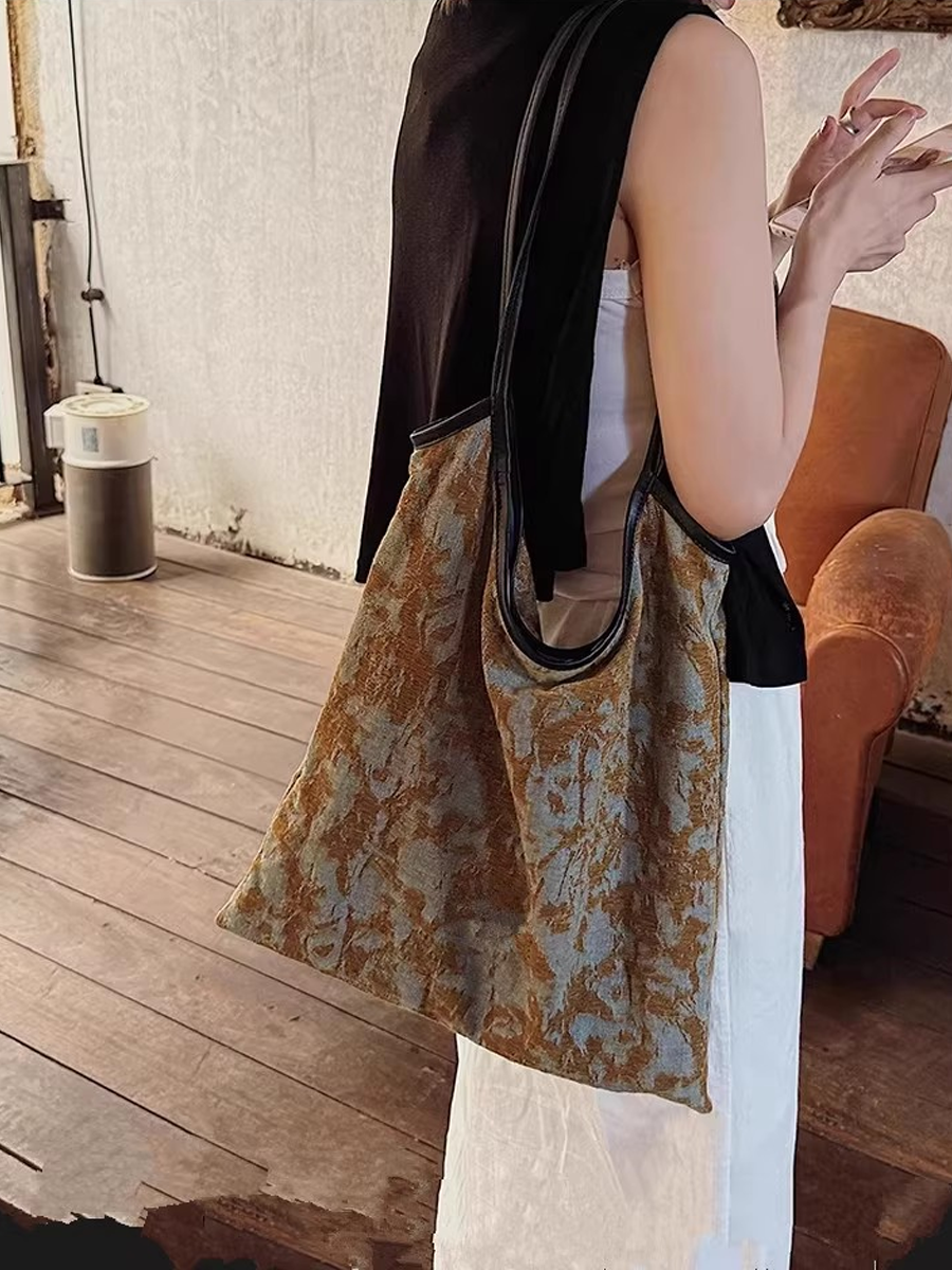 Schultertasche aus geprägtem Canvas mit Retro-Ölgemälde-Motiv