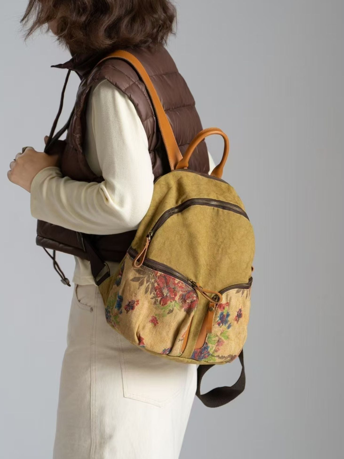 03041 Retro-Rucksack mit Blumenmuster