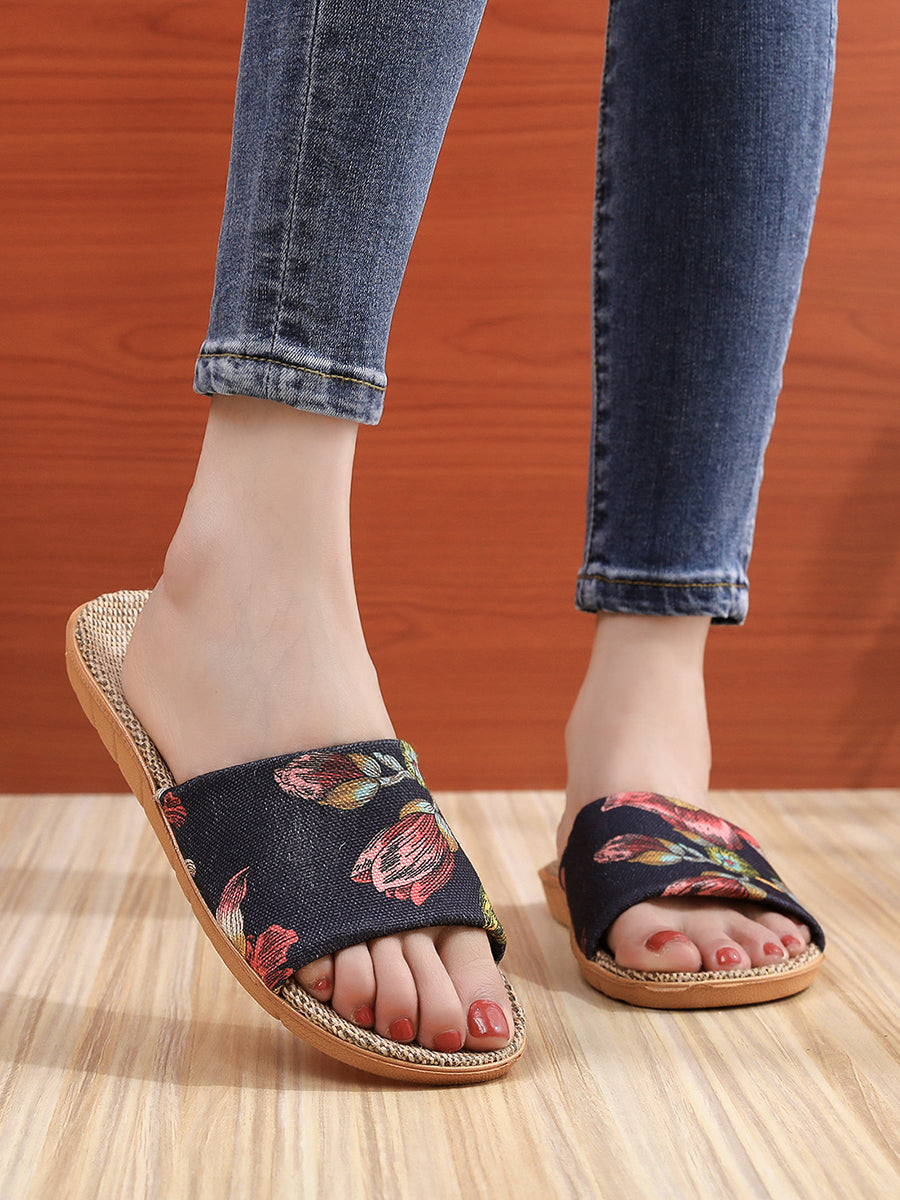 Vintage-Leinenpantoffeln mit Blumenmuster für drinnen