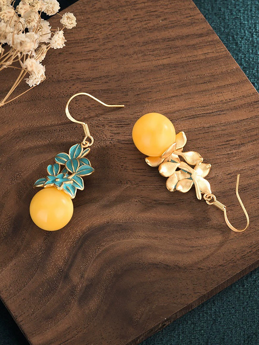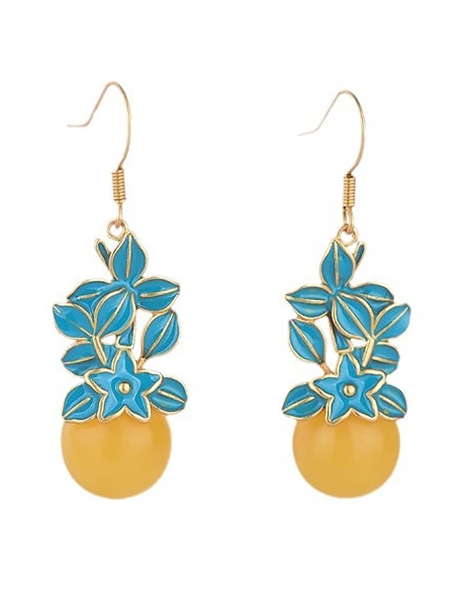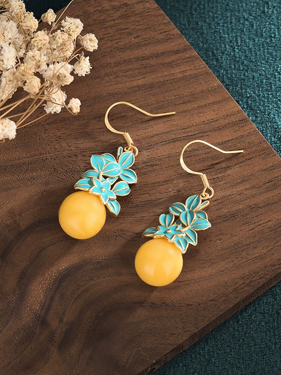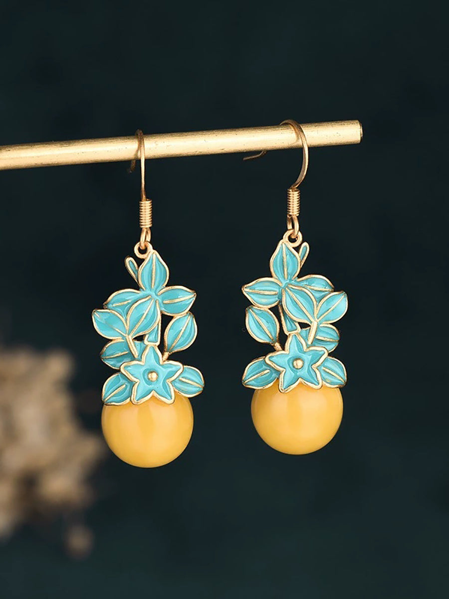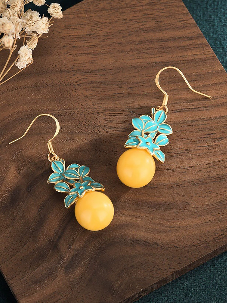 Vintage Ohrringe aus Wachsperlen, Emaille, Blumenform und Legierung