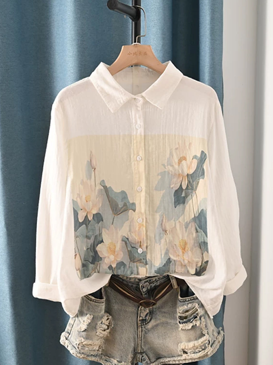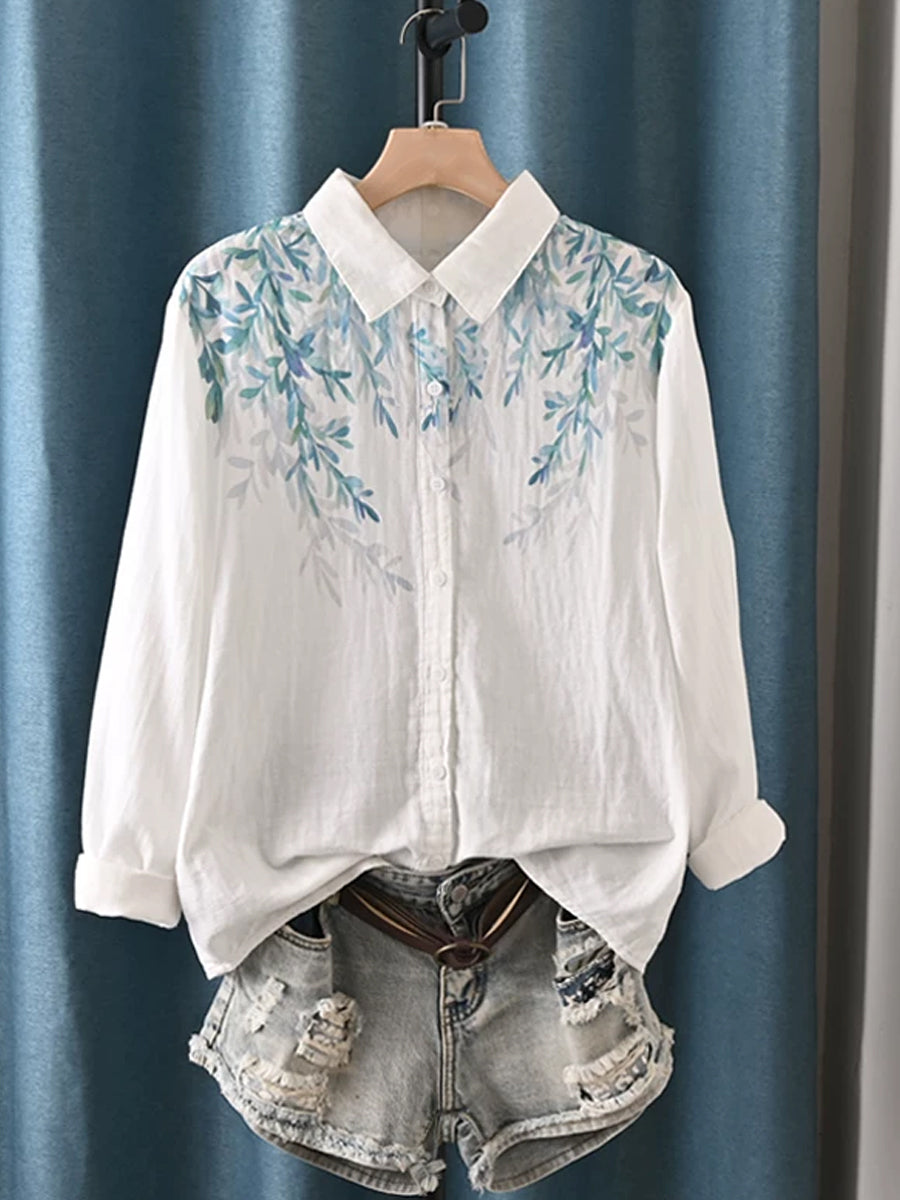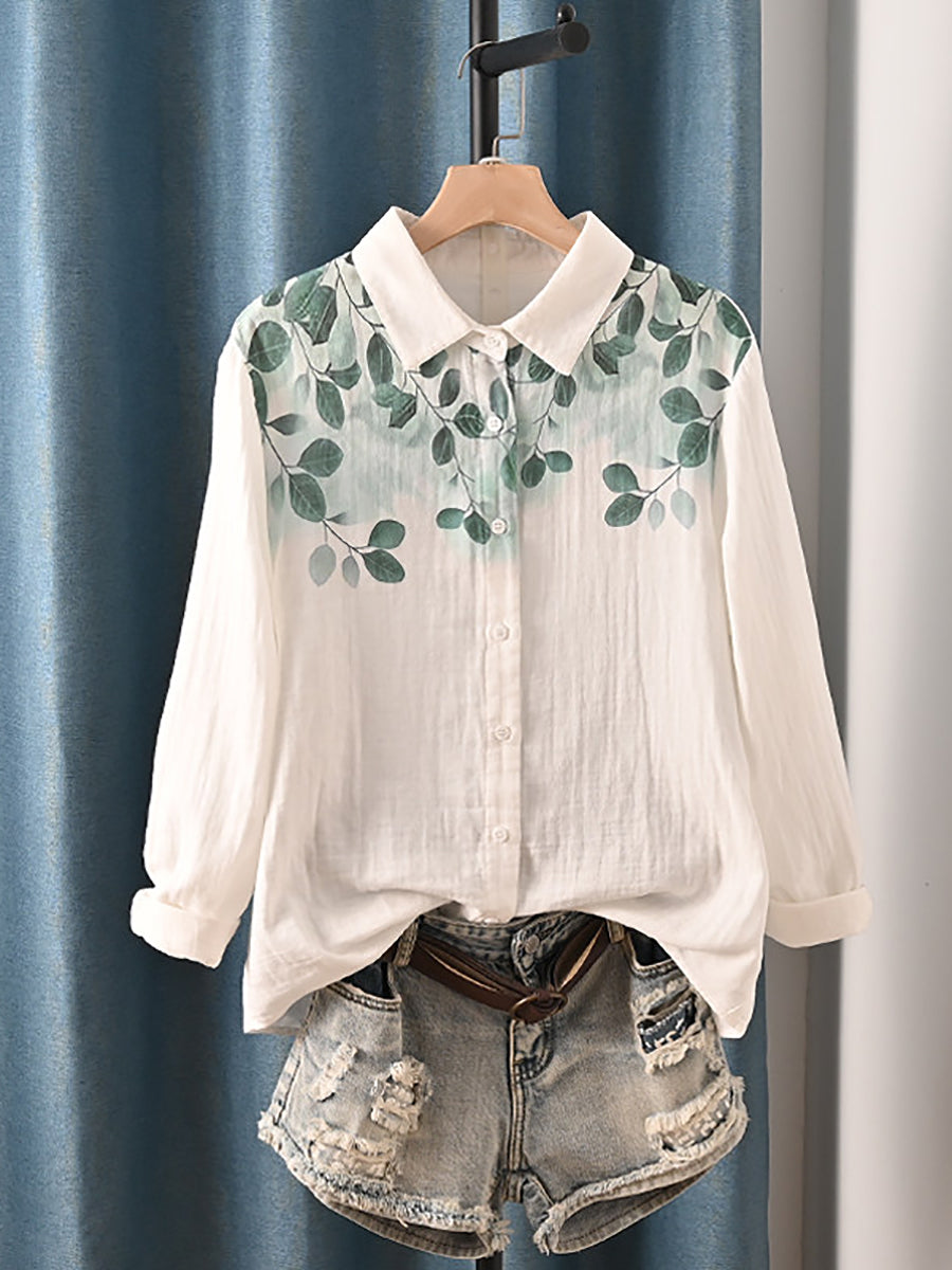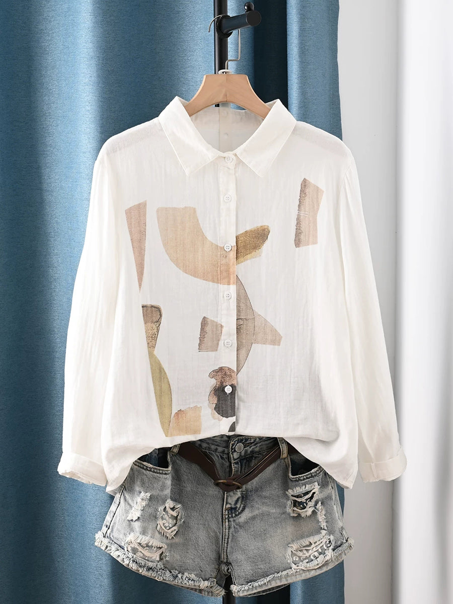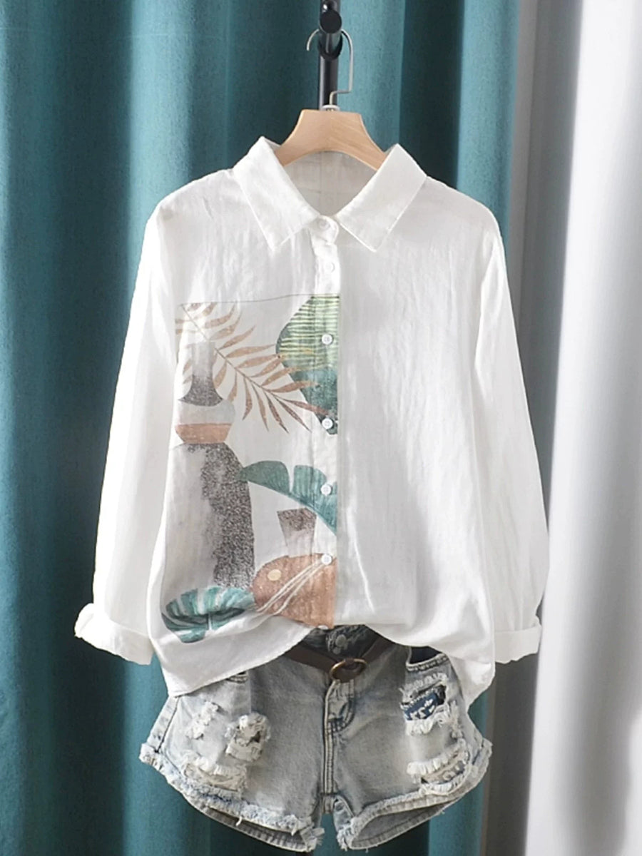 Artsy Damen-Frühlingsbluse aus 100 % Baumwolle mit Umlegekragen