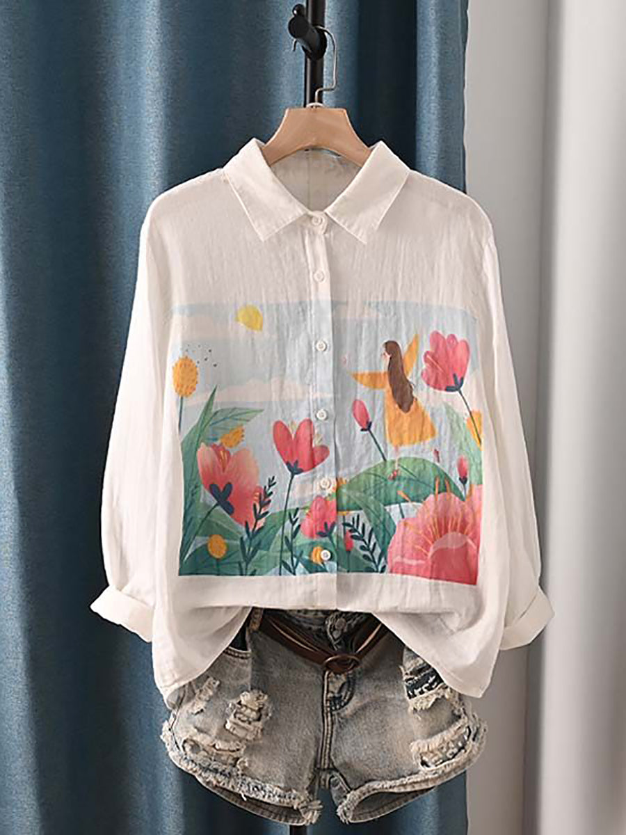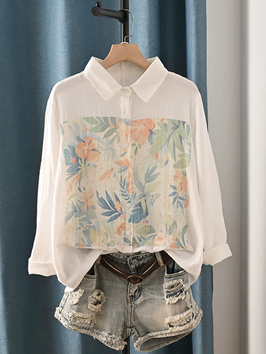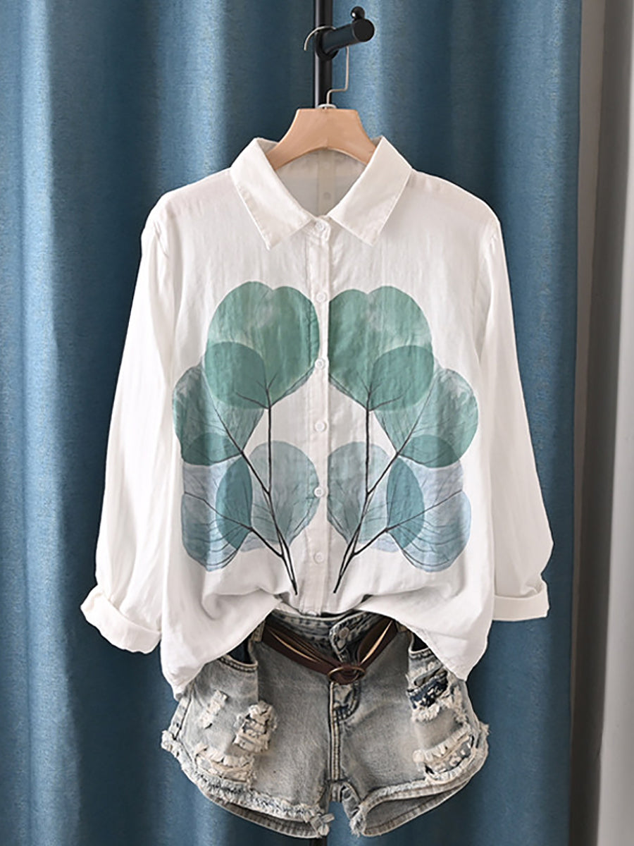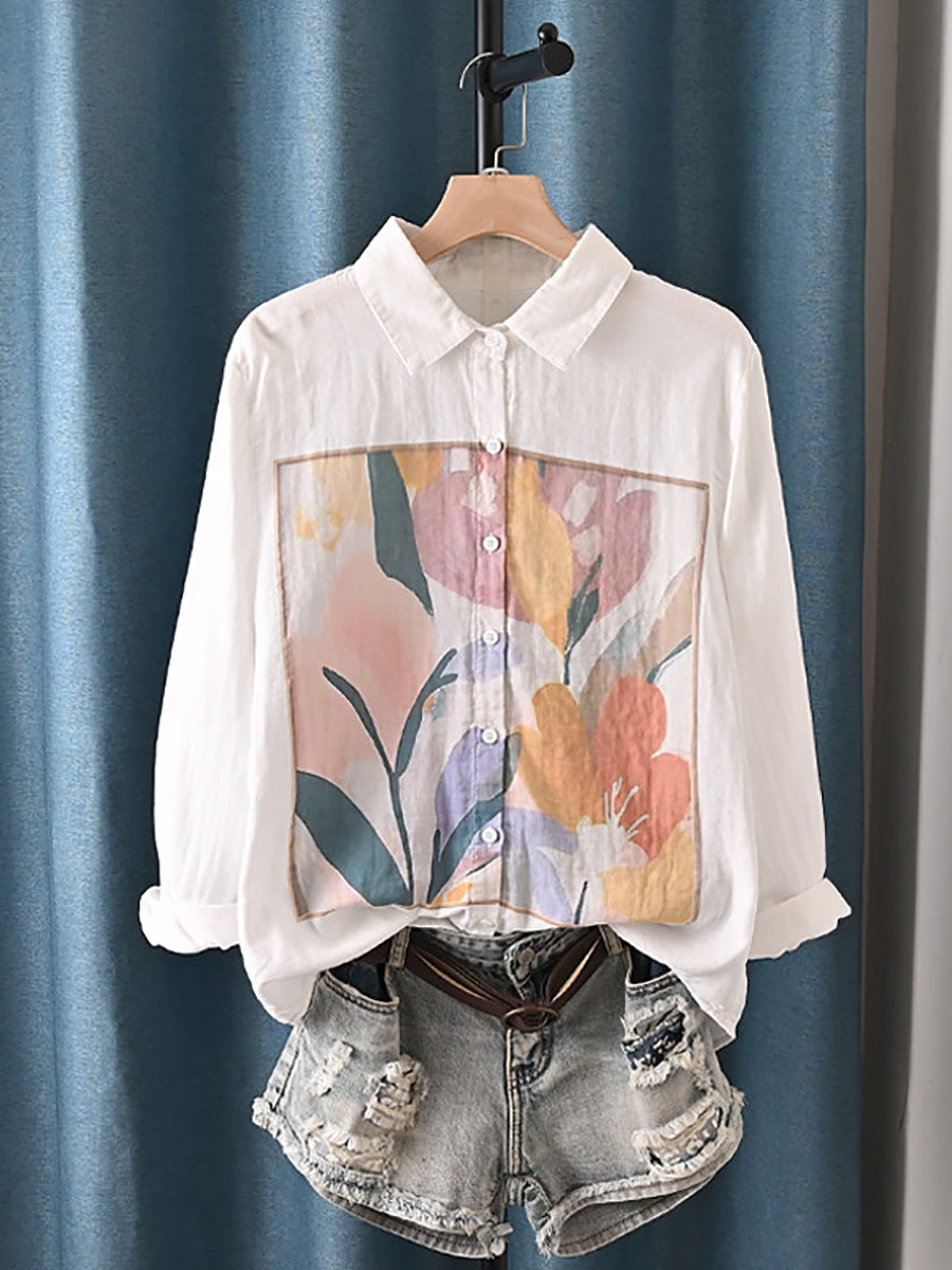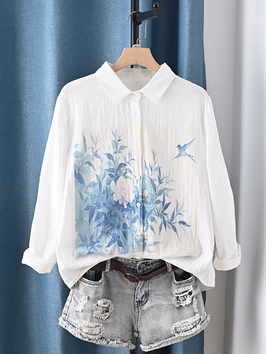 Artsy Damen-Frühlingsbluse aus 100 % Baumwolle mit Umlegekragen