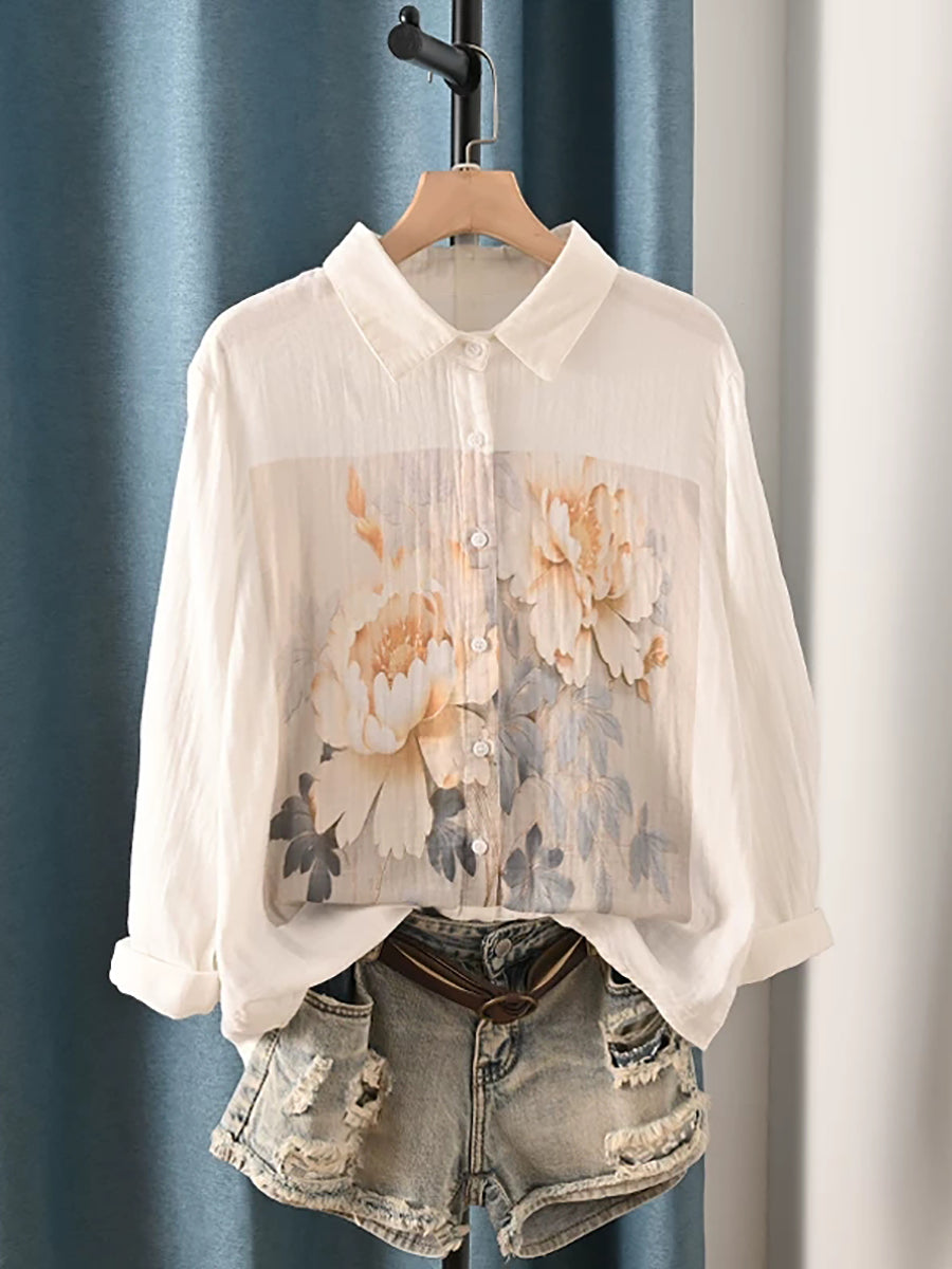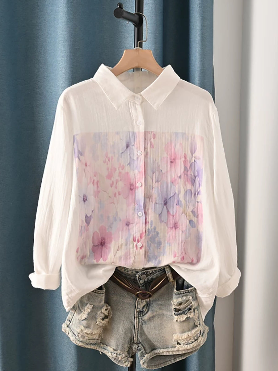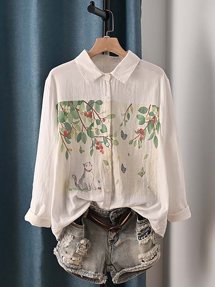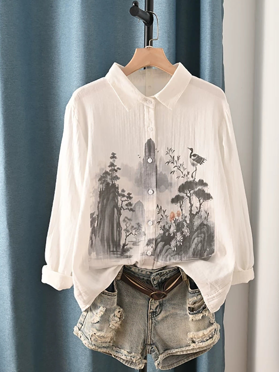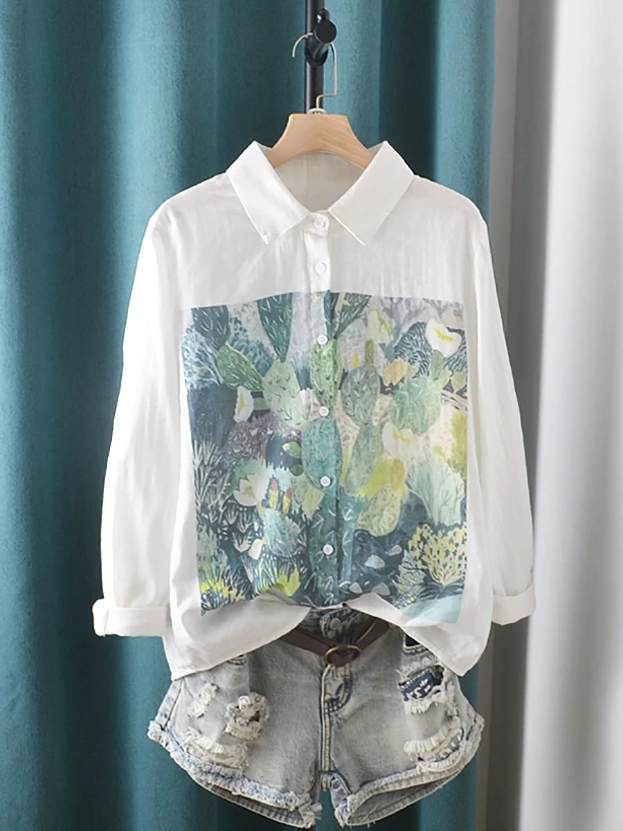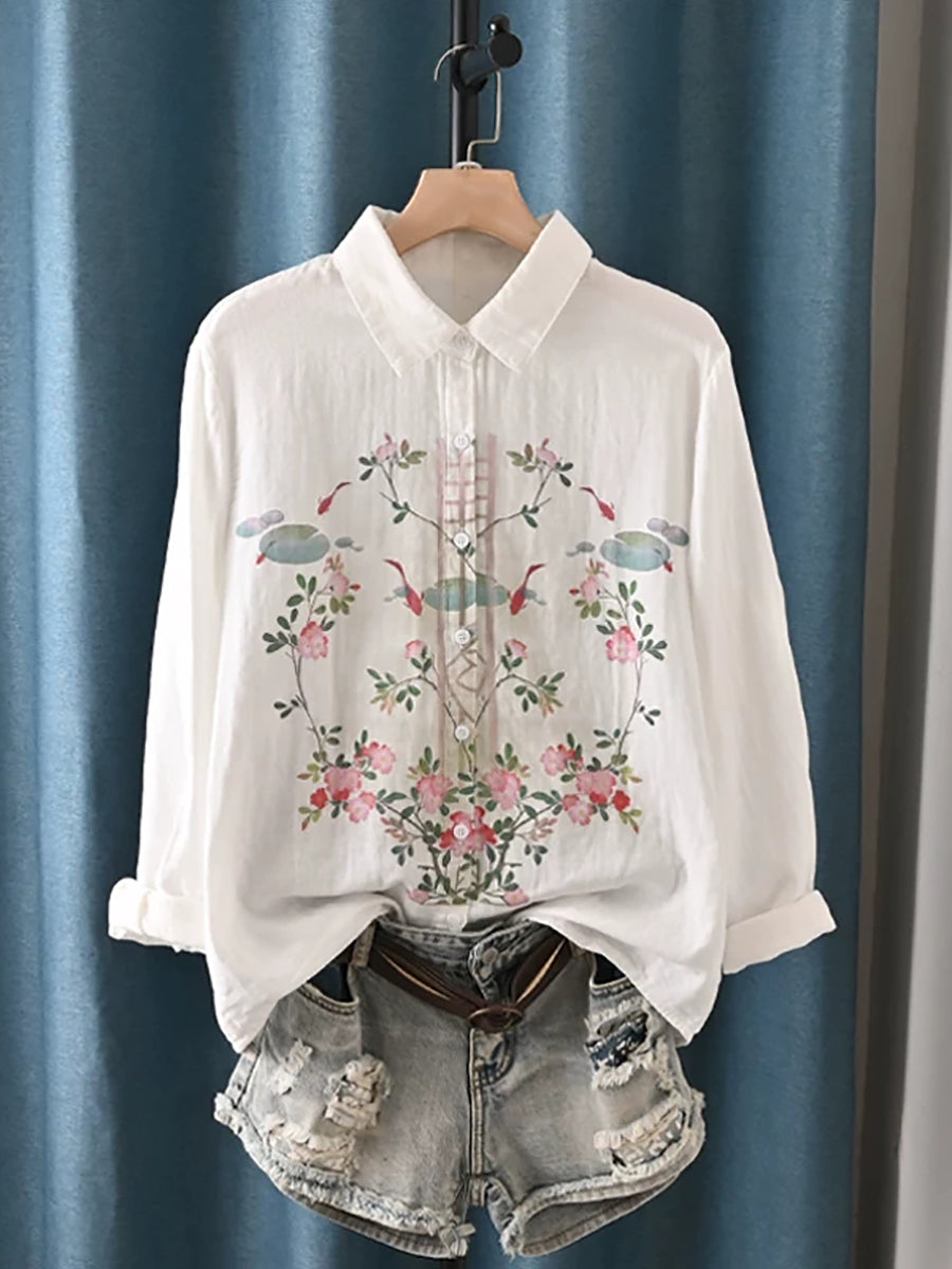 Artsy Damen-Frühlingsbluse aus 100 % Baumwolle mit Umlegekragen