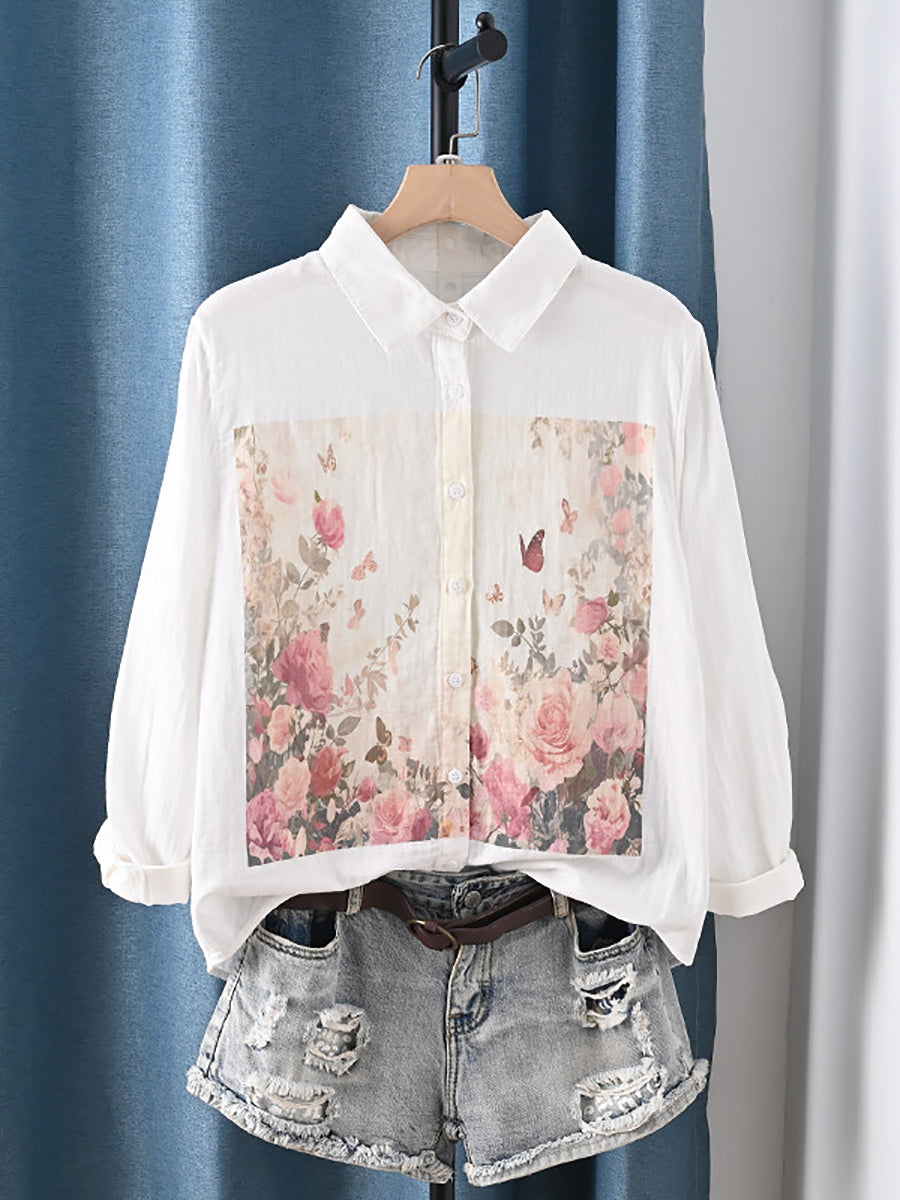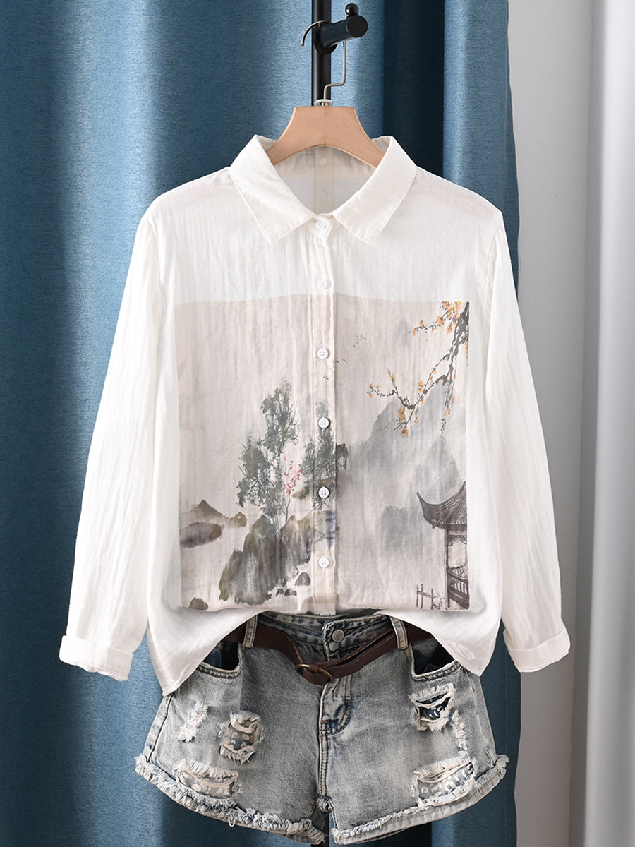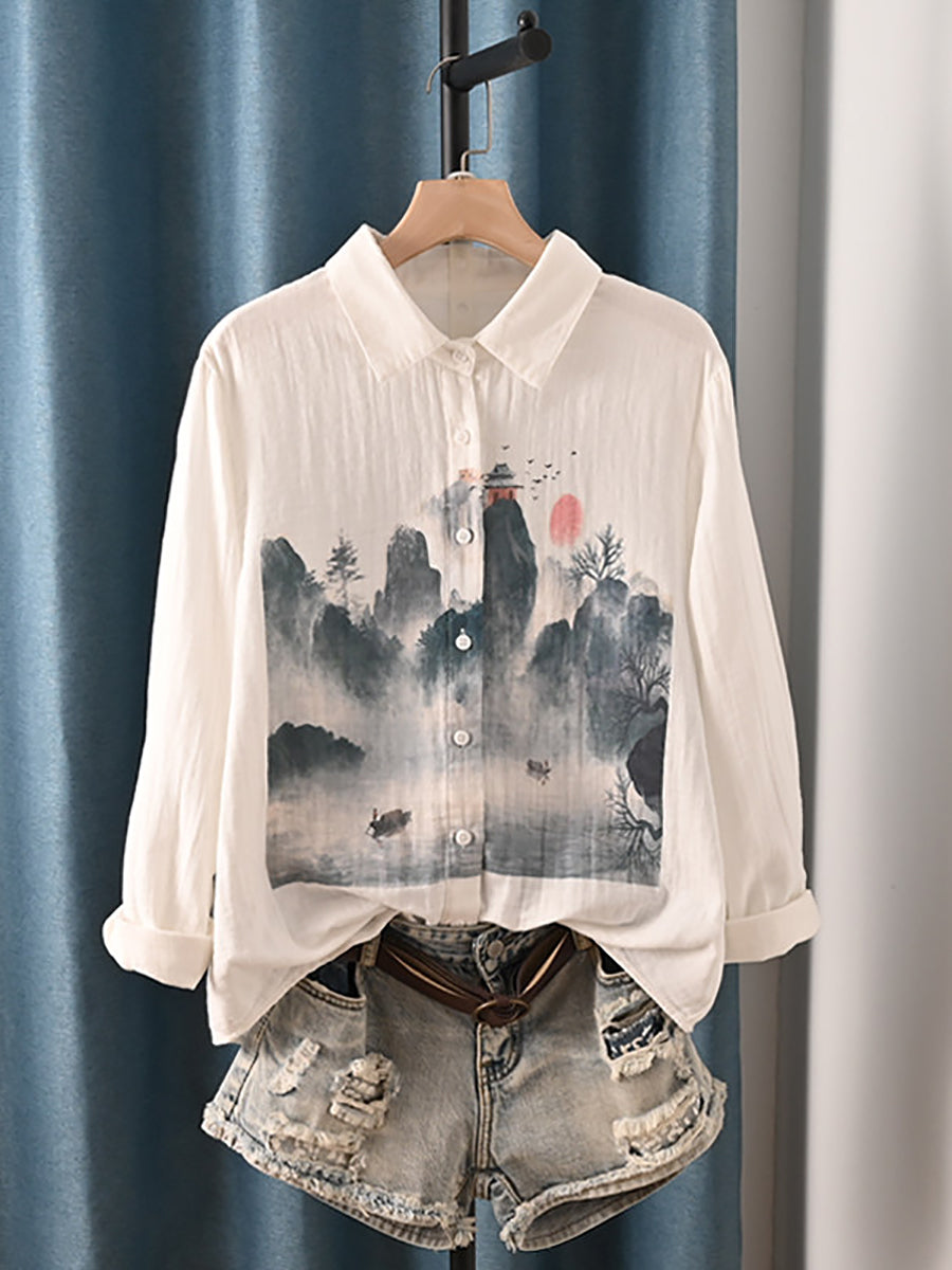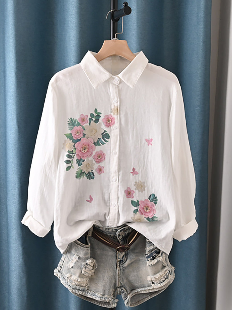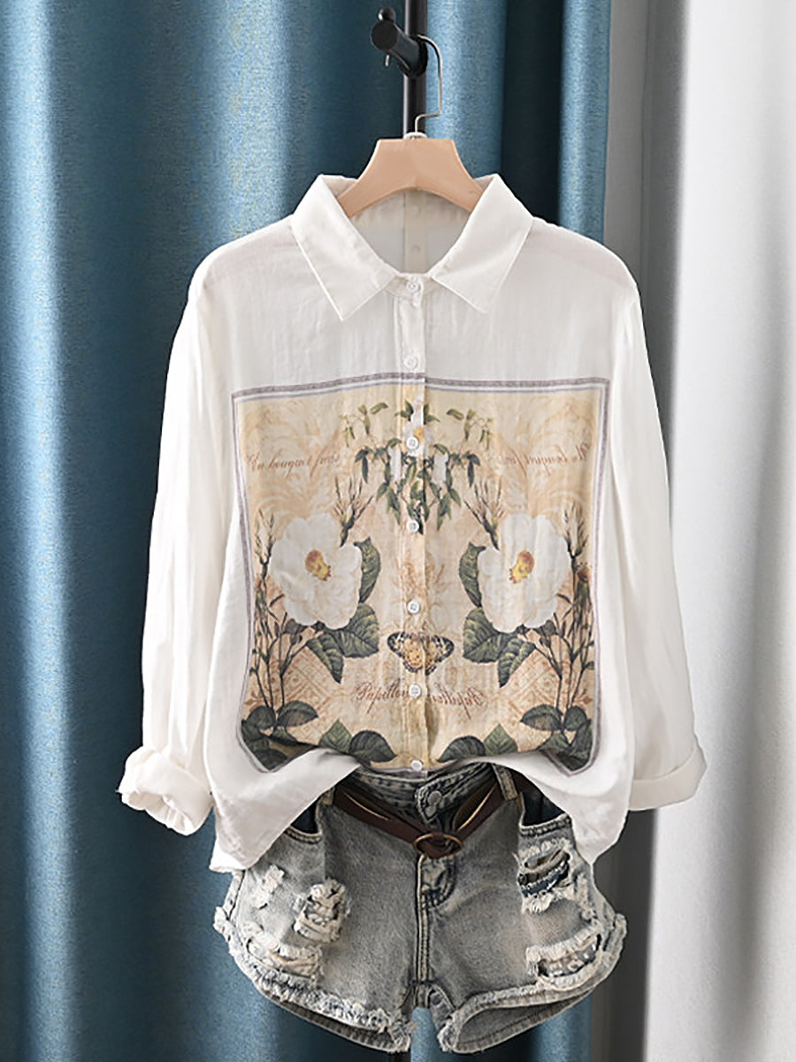 Artsy Damen-Frühlingsbluse aus 100 % Baumwolle mit Umlegekragen