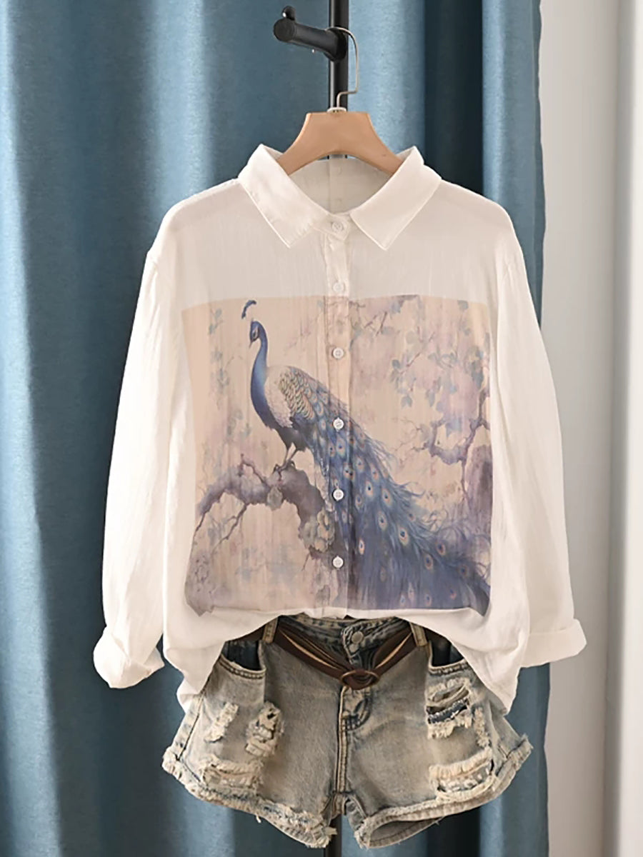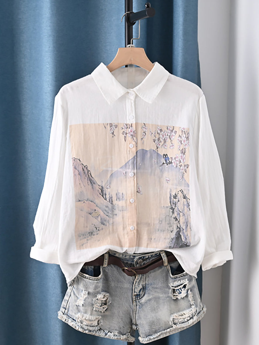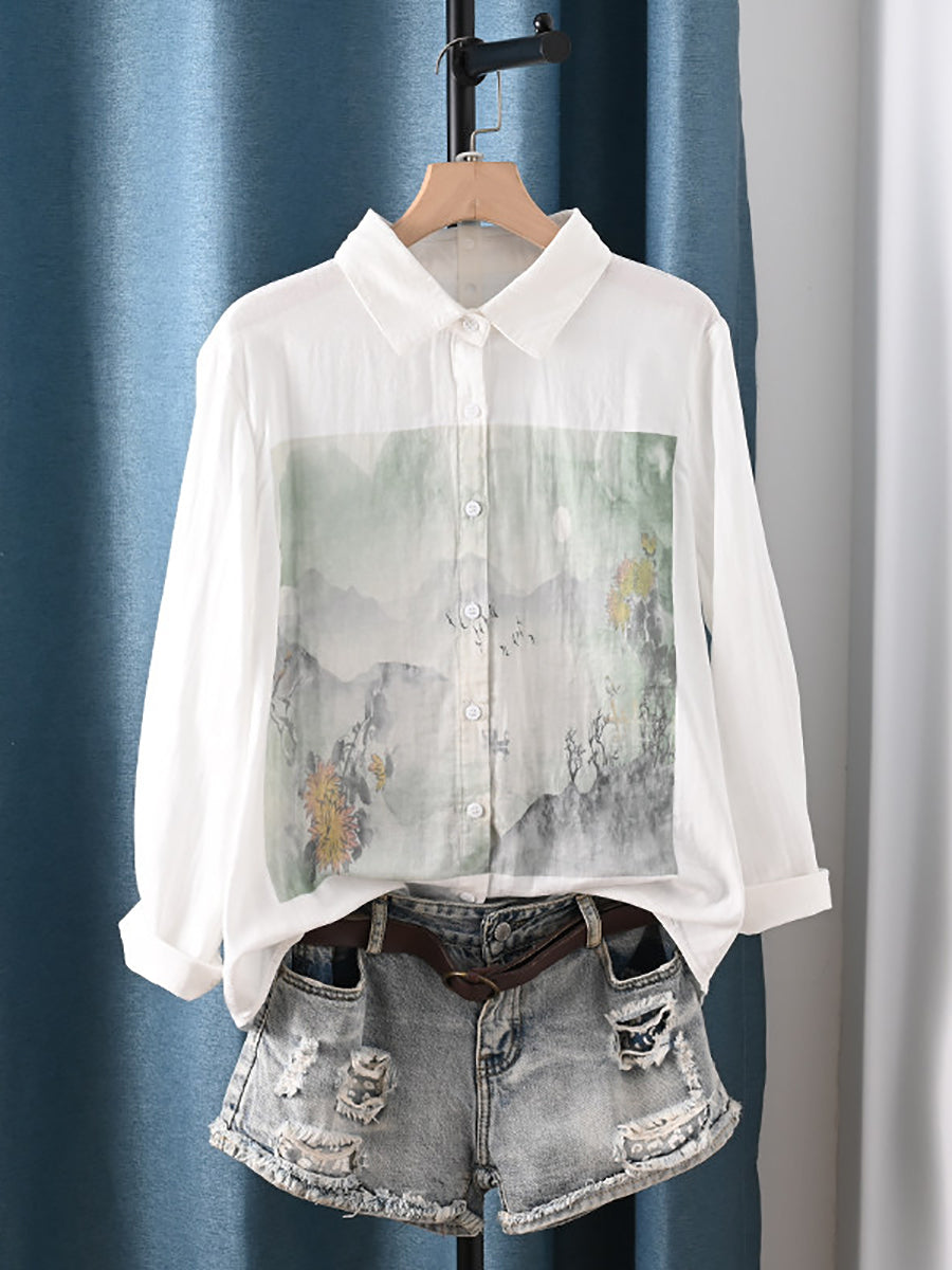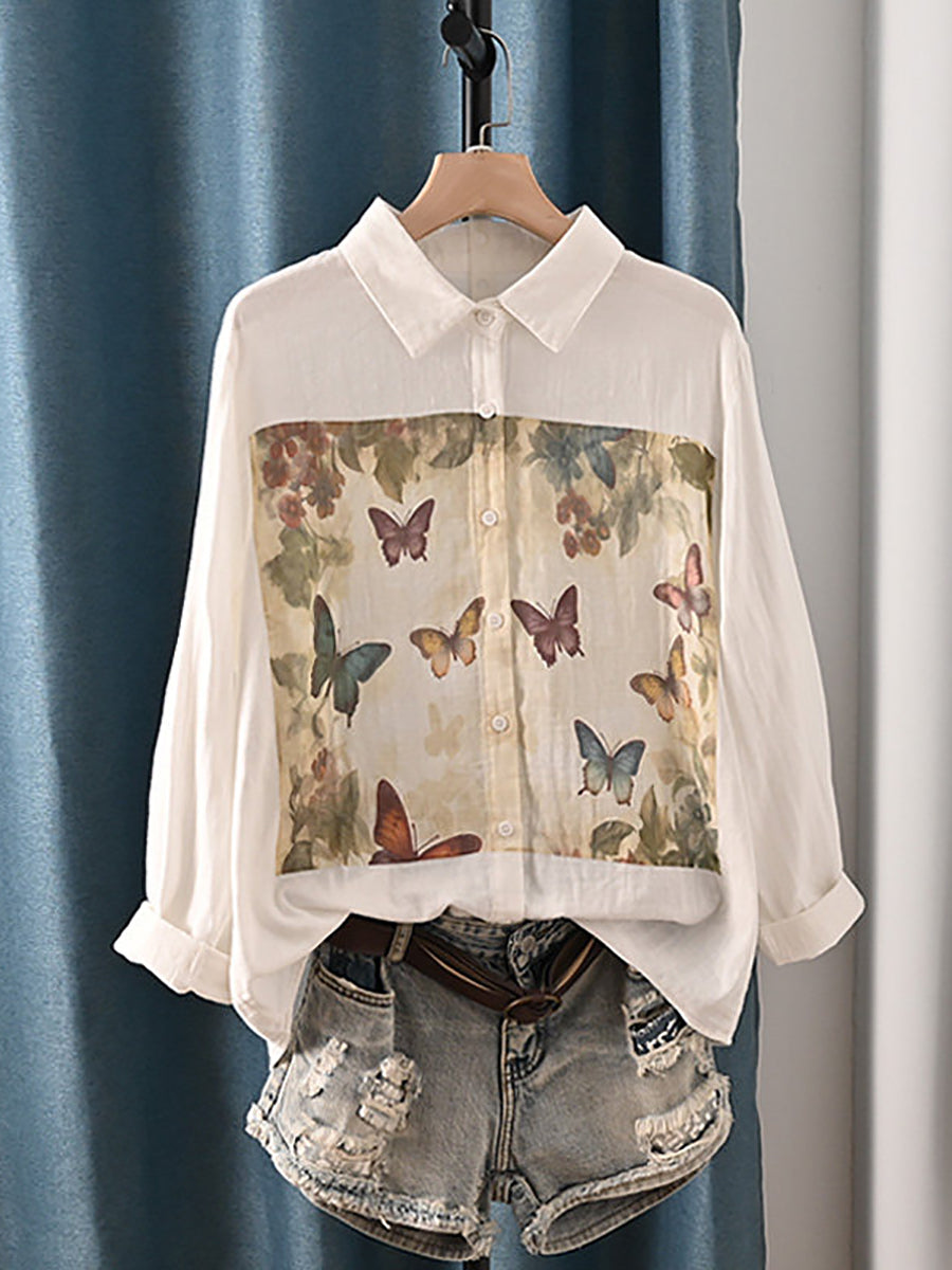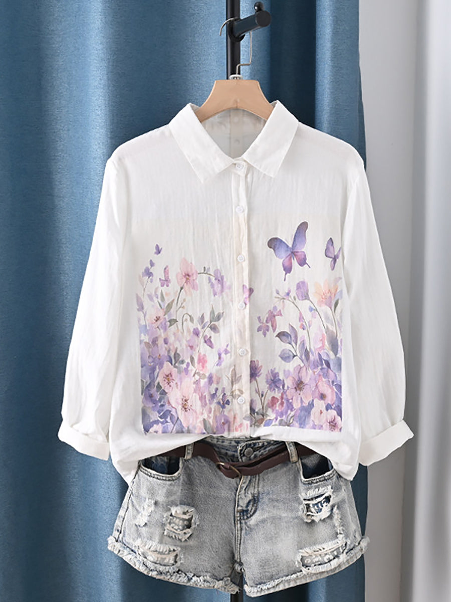 Artsy Damen-Frühlingsbluse aus 100 % Baumwolle mit Umlegekragen